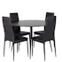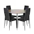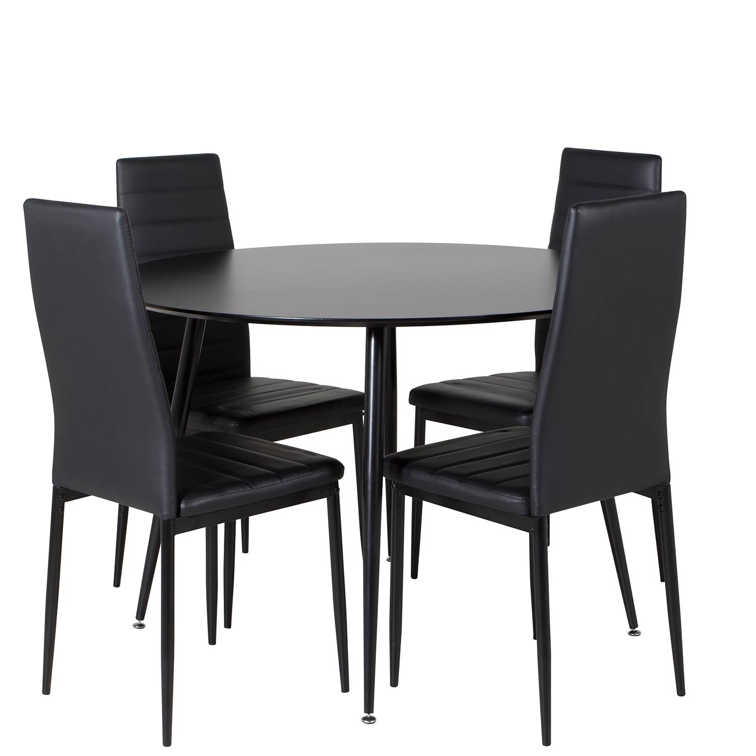 Matgrupp Venture Home Silvia med 4 Sly Stolar Runt är en stilren matgrupp med ett runt matbord i MDF och svarta bordsben i metall. Det medföljer fyra matstolar med svarta stolsben i metall och svarta sitsar i konstläder.