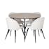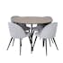 Matgrupp Venture Home Silvia med 4 Valentina Stolar Manchester Runt är en stilren matgrupp med ett runt matbord i MDF och svarta bordsben i metall. Det medföljer fyra matstolar med svarta stolsben i metall och sitsar i manchester.