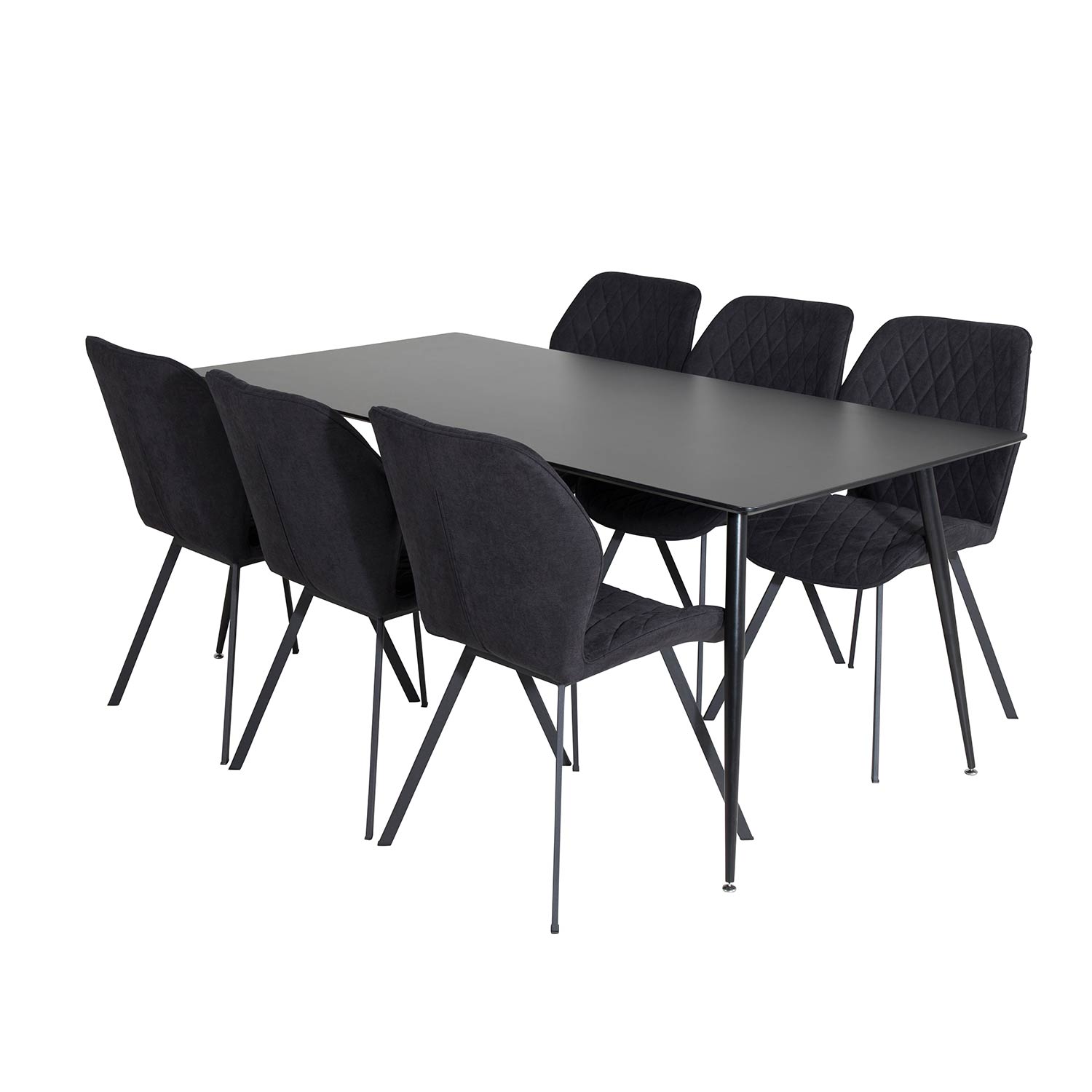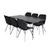 Matgrupp Venture Home Silvia med 6 Geneva Stolar är en stilren matgrupp med ett matbord i MDF och svarta bordsben i metall. Det medföljer sex matstolar med svarta stolsben i metall och sitsar i polyester.