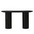 Bordet är genomgående tillverkat av MDF med faner och har en robust stomme med två cylinderformade ben i ribbad design.