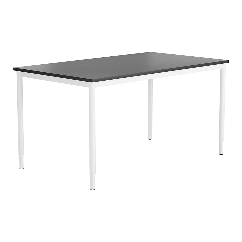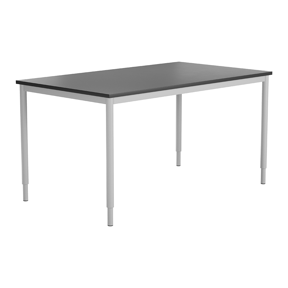 Bord med hörnben i en stabil konstruktion, där en spånskiva belagd med laminat binds samman med en sarg i stål. Sarg och skiva är sammanfogade från fabrik, bara benen behöver monteras vid leverans. Benens höjd kan justeras manuellt. Bordet finns i flera utföranden och passar lika bra vid arbetsplatsen som i lunchrummet. Välj till någon av våra hurtsar för att få en smidig och flexibel förvaring till arbetsplatsen.
