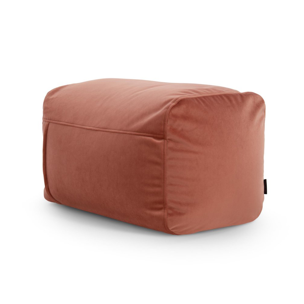 Sittpuff Plus Barcelona från SLOWDOWN. En rektangelformad saccosäck som passar utmärkt för att sträcka på trötta ben. Denna handgjorda sittpuff är kompakt och kan enkelt flyttas runt i rummet. Sittpuffen används ofta för att lägga småprylar på eller för gäster att sätta sig. Tillverkad i lyxig sammet.