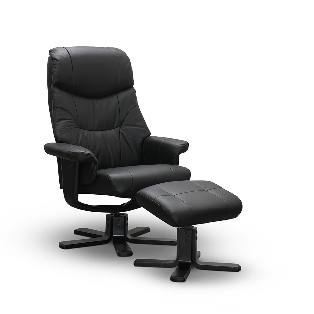 Bremen är en bekväm snurrfåtölj med steglös glidefunktion och separat fotpall. Finns i läder/PU och tyg. Tyg Loft är ett OEKO-TEX certifierat tyg.