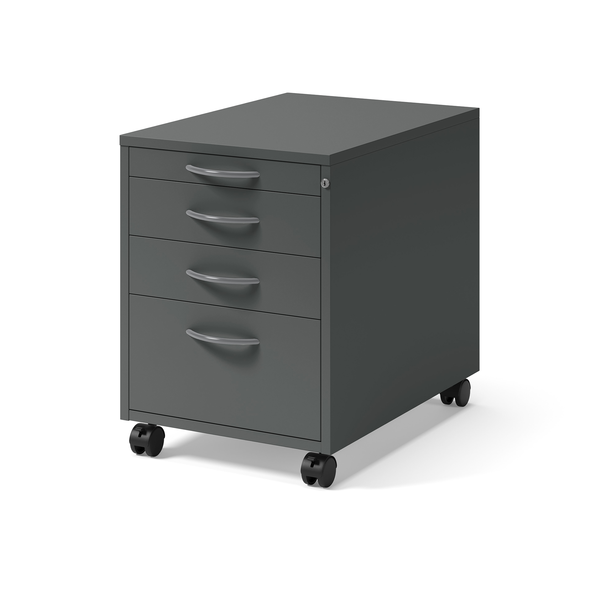 Rullhurts med fyra lådor från Lanab Group. Med flexibla och smarta förvaringsmöbler håller du arbetsytorna fria och får lättare att hålla ordning på din arbetsplats. Finns i flera färger.