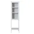 Misha från Venture Home är ett hög och brett vitrinskåp med två hyllplan inne i skåpet, två glasdörrar samt ett öppet hyllplan nedtill. Skåpet är av pulverlackerat stål.