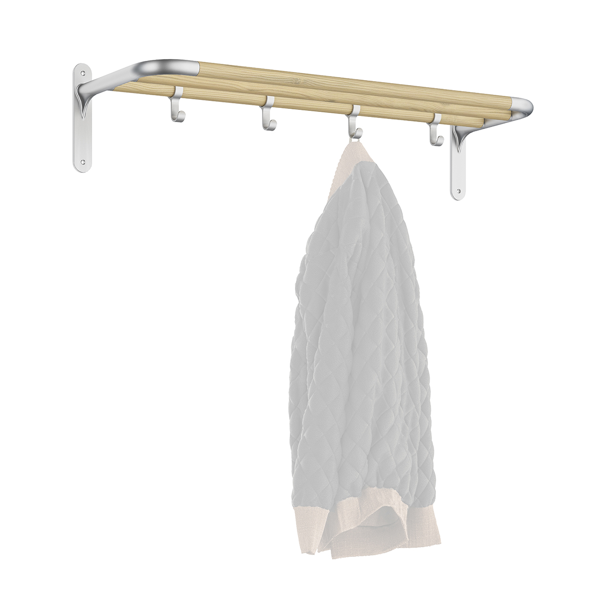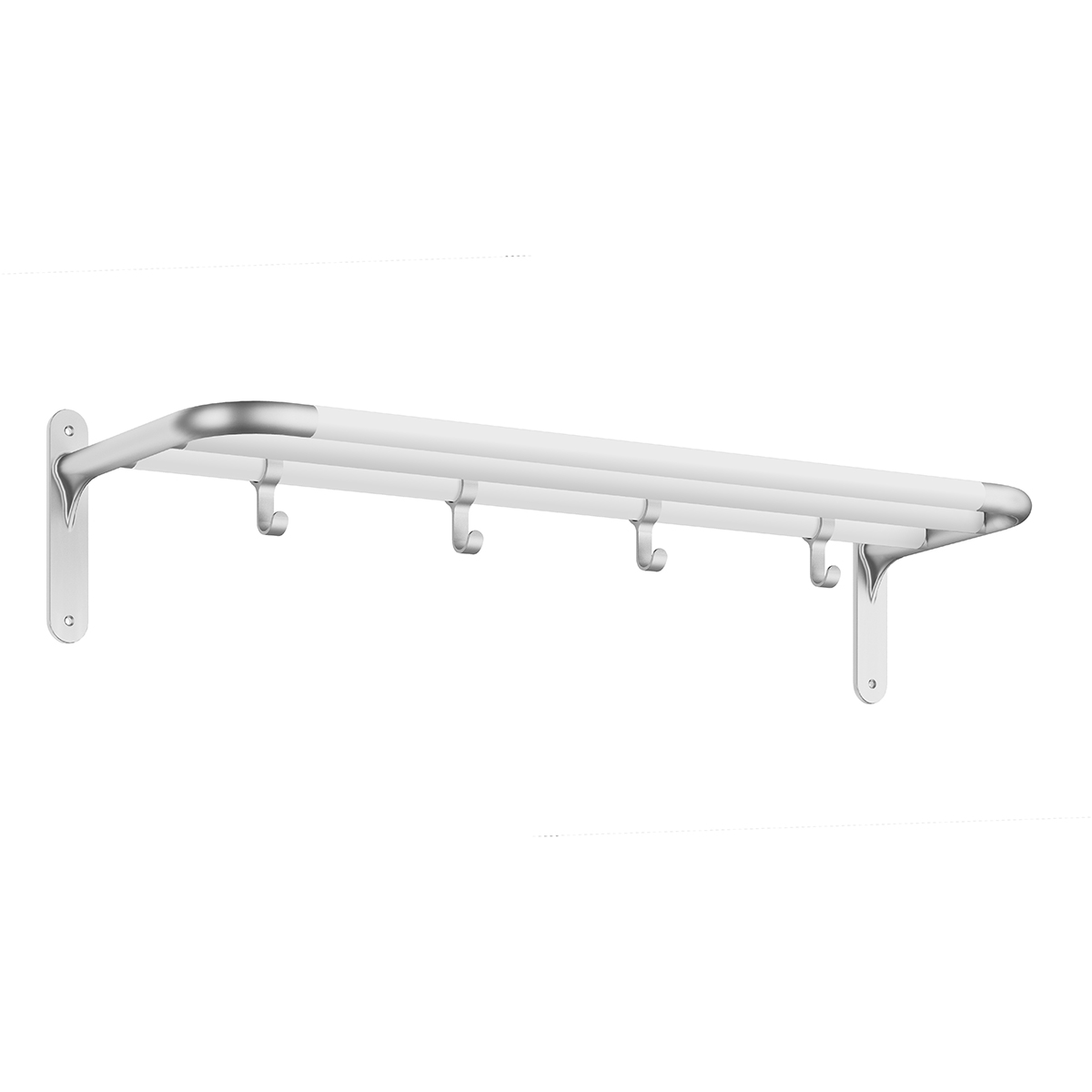 Kommer med 4-krokar, används hyllan till skor kan de enkelt plockas av.
