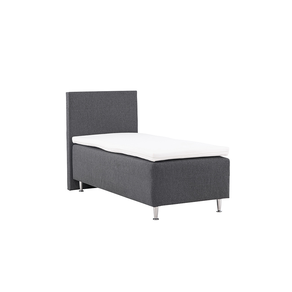 Sängen är utrustad med ben i kromad plast som inte bara ger stabilitet utan också en elegant kontrast till tyget. Du kan vara säker på att Mesa är en säng som håller över tid och ger dig många goda nätters sömn.