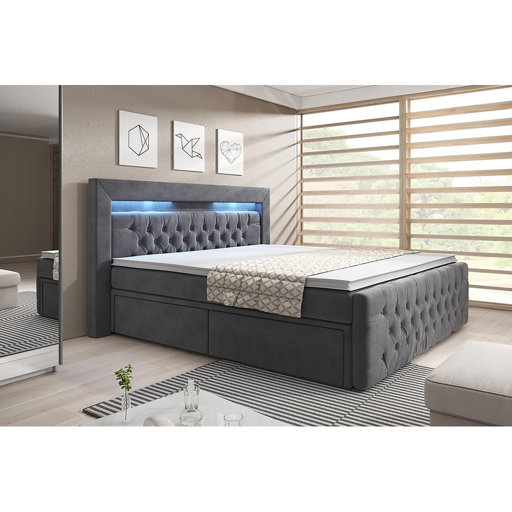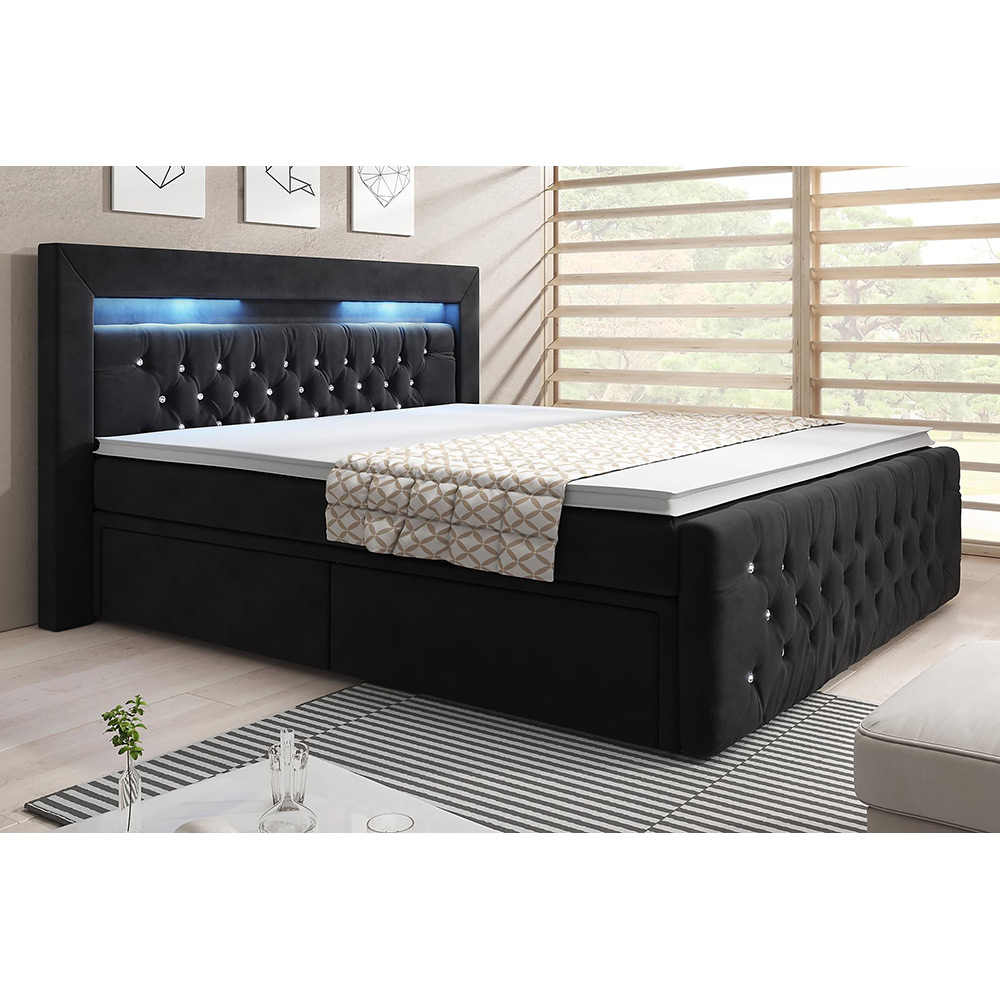 Kontinentalsäng Cloud47Sängpaket Franco med Dubbel Förvaring och LED-belysning Sammet