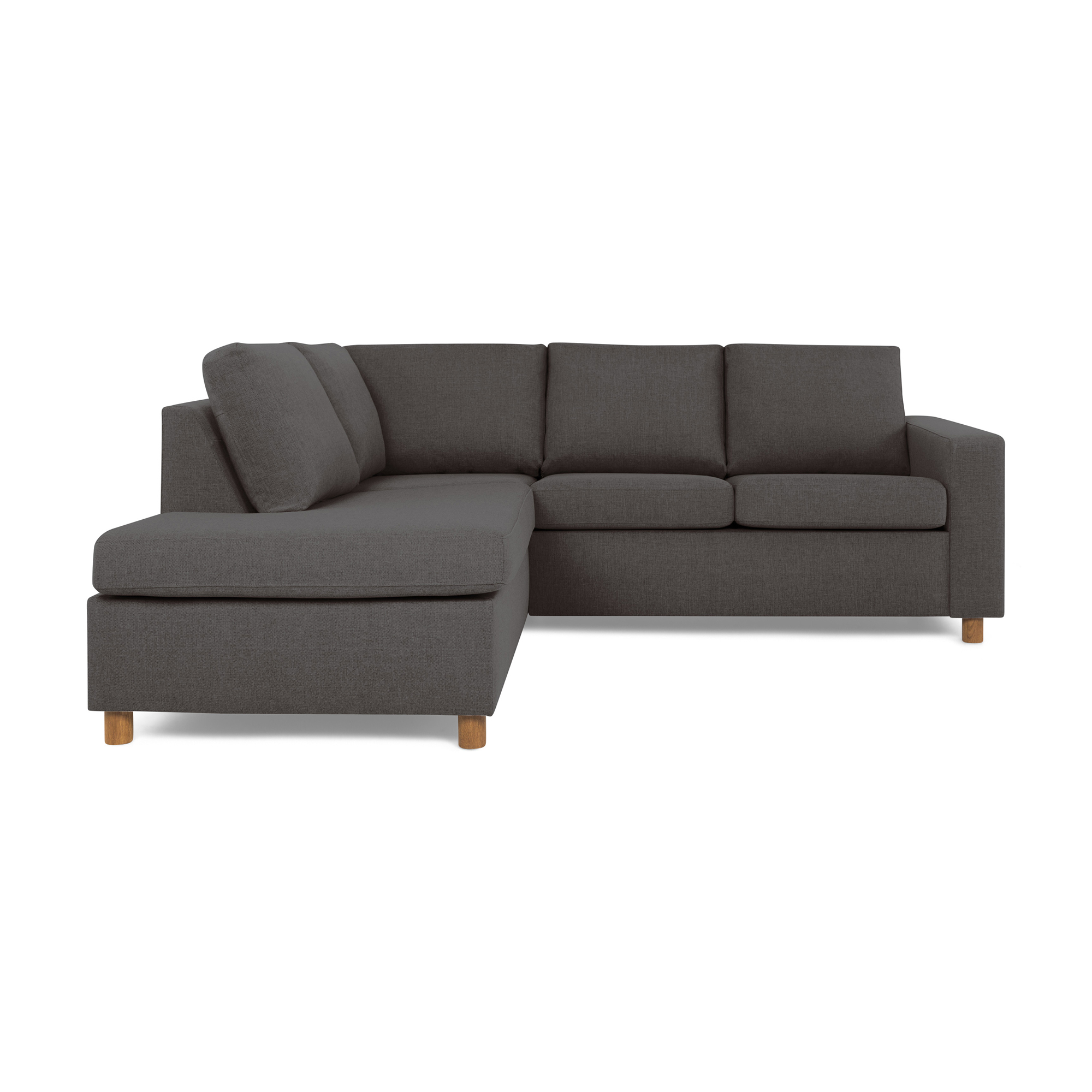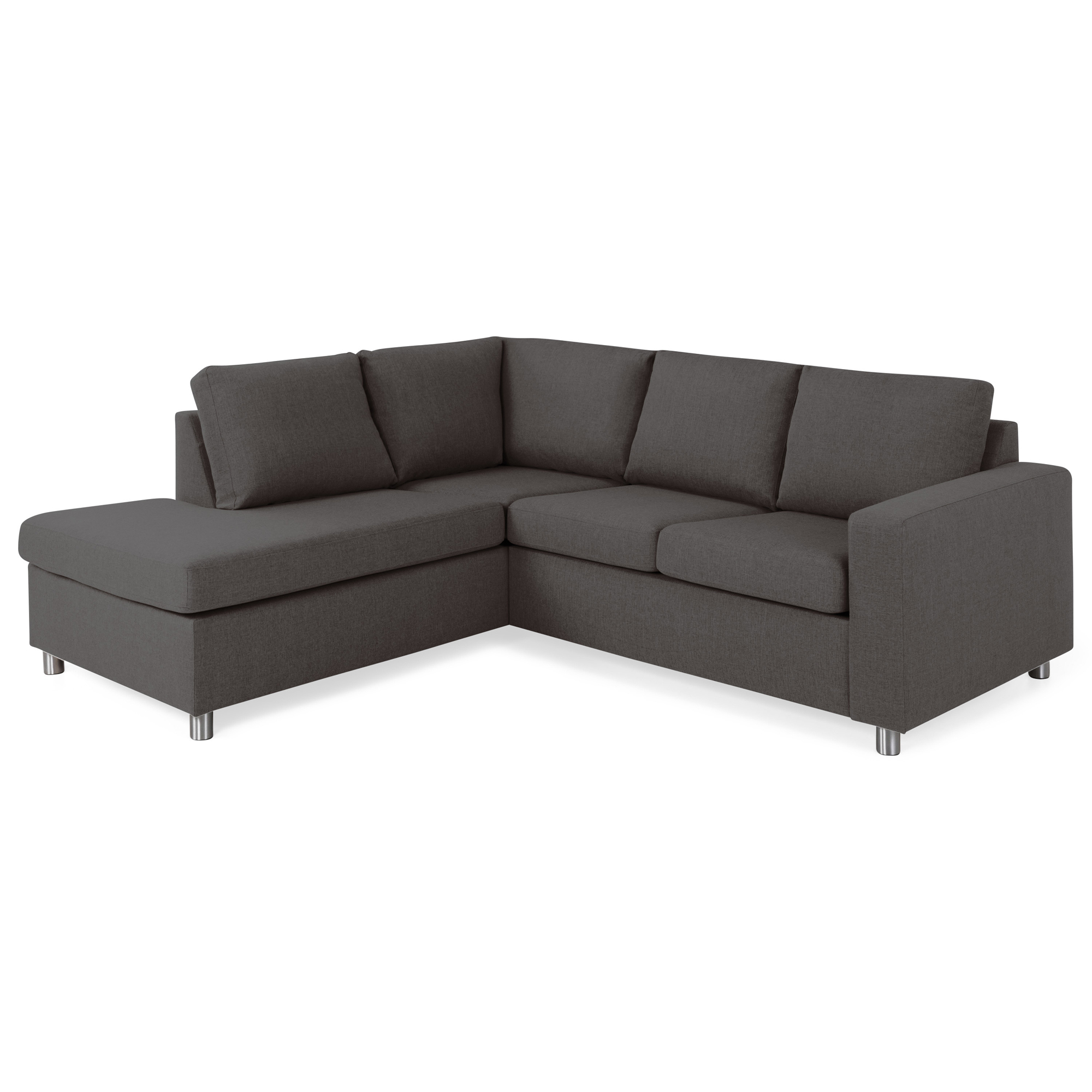 Soffa Crazy från Basic Home. En rymlig 2-sitssoffa med schäslong för den mindre bostaden. Crazy-sofforna är otroligt prisvärda och bekväma med sittvänlig komfort. Med schäslong är soffan perfekt om du vill bre ut dig under filmkvällen. Den är klädd i ett lättmatchat tyg som kommer i olika nyanser och passar tack vare den stilrena och raka designen många olika inredningsstilar.