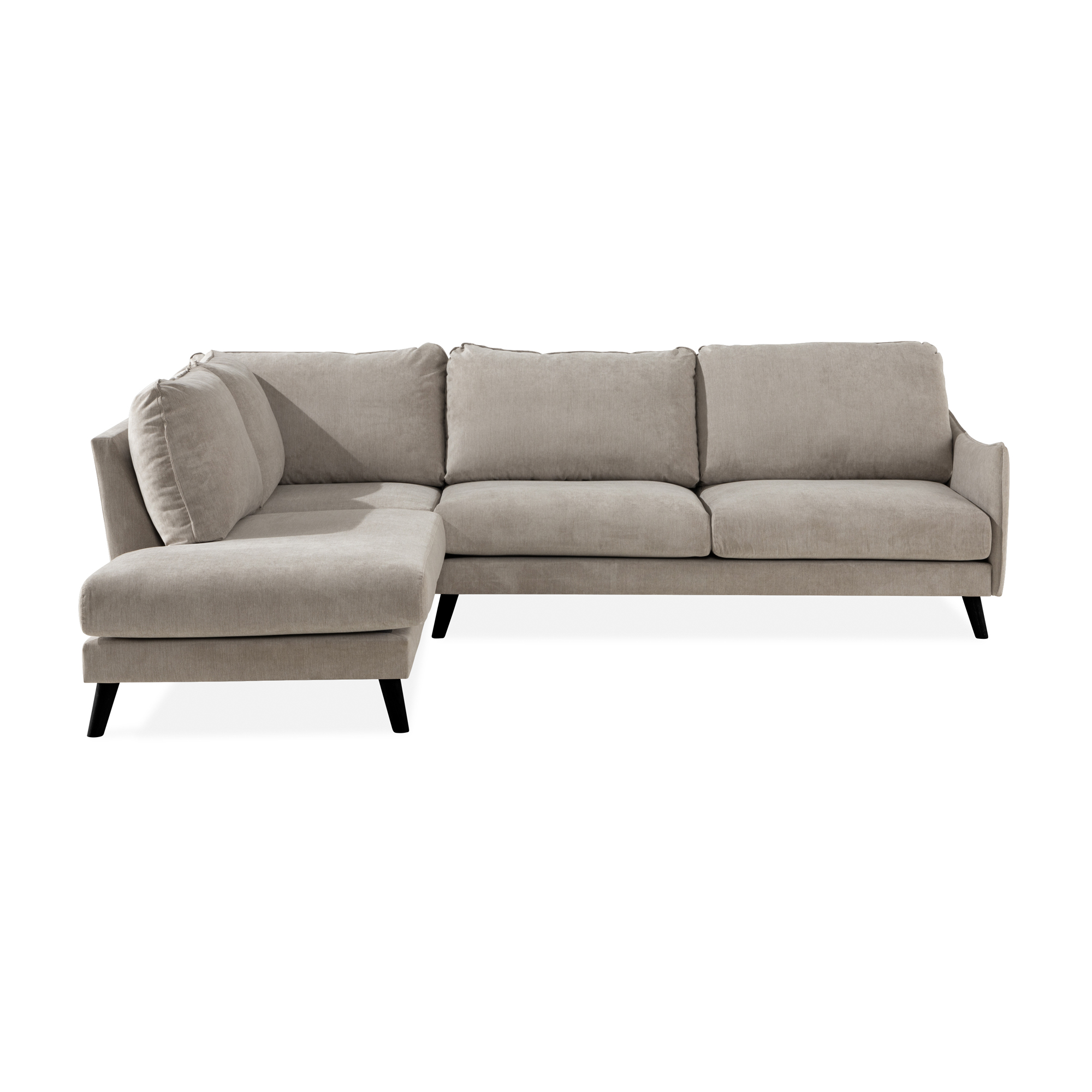 Soffa Trend Lyx från Scandi Days. Denna schäslongsoffa kombinerar modern elegans med hög komfort. Den stilrena designen med tygklädsel och träben passar perfekt i ett modernt hem. Soffan är rymlig och perfekt för avkoppling eller underhållning. Trend Lyx är ett prisvärt alternativ för den som söker både stil och bekvämlighet i en hörnsoffa.