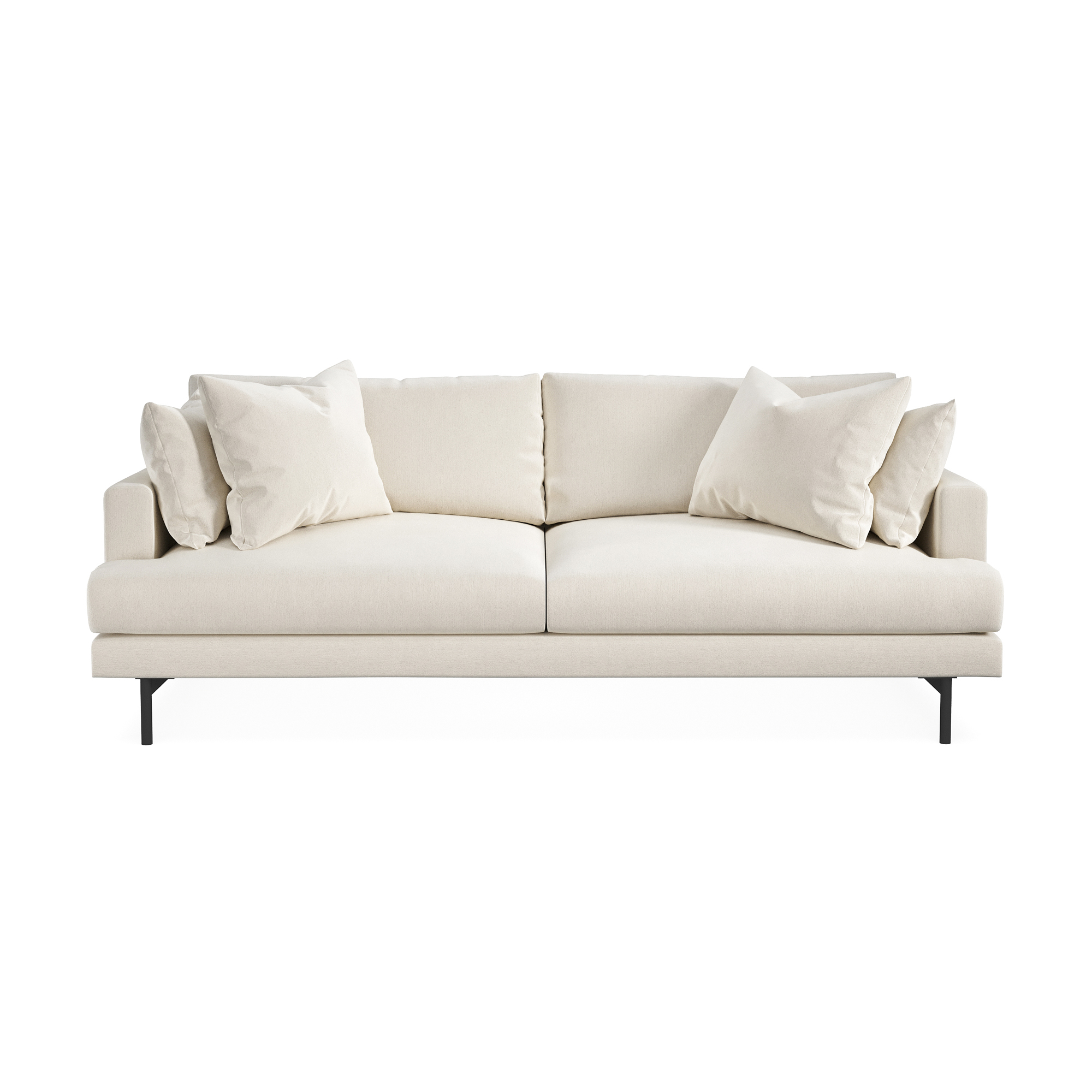 De nätta metallbenen ger rummet en luftig känsla och gör det dessutom lättare att komma åt med dammsugaren. Soffan har ett behagligt sittdjup och generöst stoppade sitt- och ryggplymåer vilket ger en utmärkt komfort. Till soffan ingår fyra prydnadskuddar i matchande klädsel för extra komfort och stil.