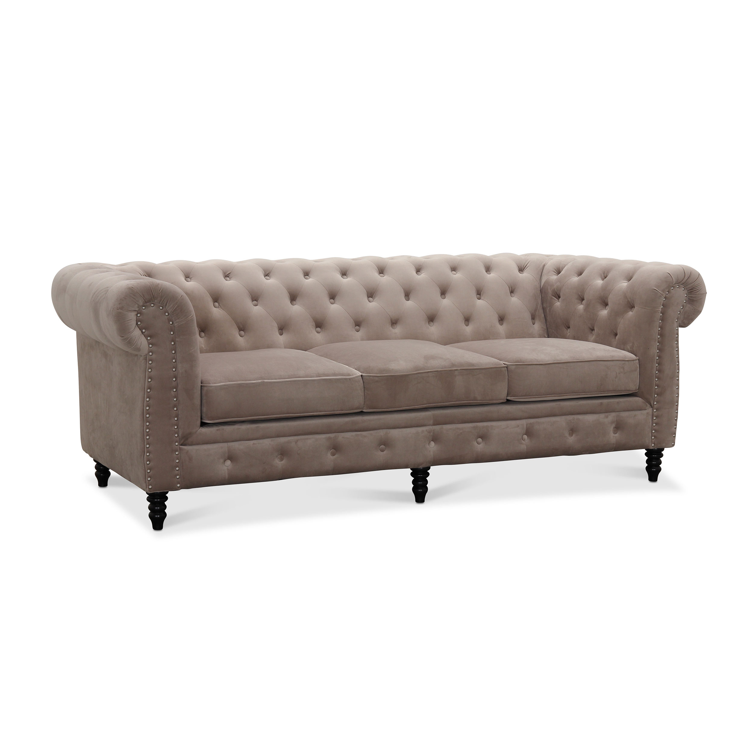 Cambridge erbjuder allt en klassisk chesterfield modell ska erbjuda; vackra rundade armstöd med en snygg pikering på armstöd och rygg. Svarta svarvade runda träben passar perfekt med designen. Snygga nitar på framsidan är också ett givet inslag. Cambridge finns som 3-sits, 2-sits samt fåtölj och i flera olika färger.