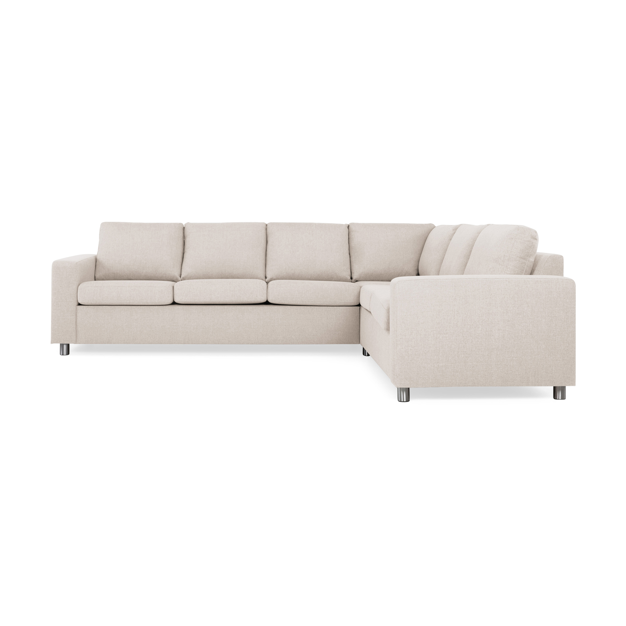 Soffa Crazy från Basic Home. En rymlig soffa för hela familjen. Crazy-sofforna är otroligt prisvärda och bekväma med sittvänlig komfort. Hörnsoffan har gott om plats, oavsett om det är fest eller om du vill bre ut dig under filmkvällen. Den är klädd i ett lättmatchat tyg som kommer i olika nyanser och passar tack vare den stilrena och raka designen många olika inredningsstilar.
