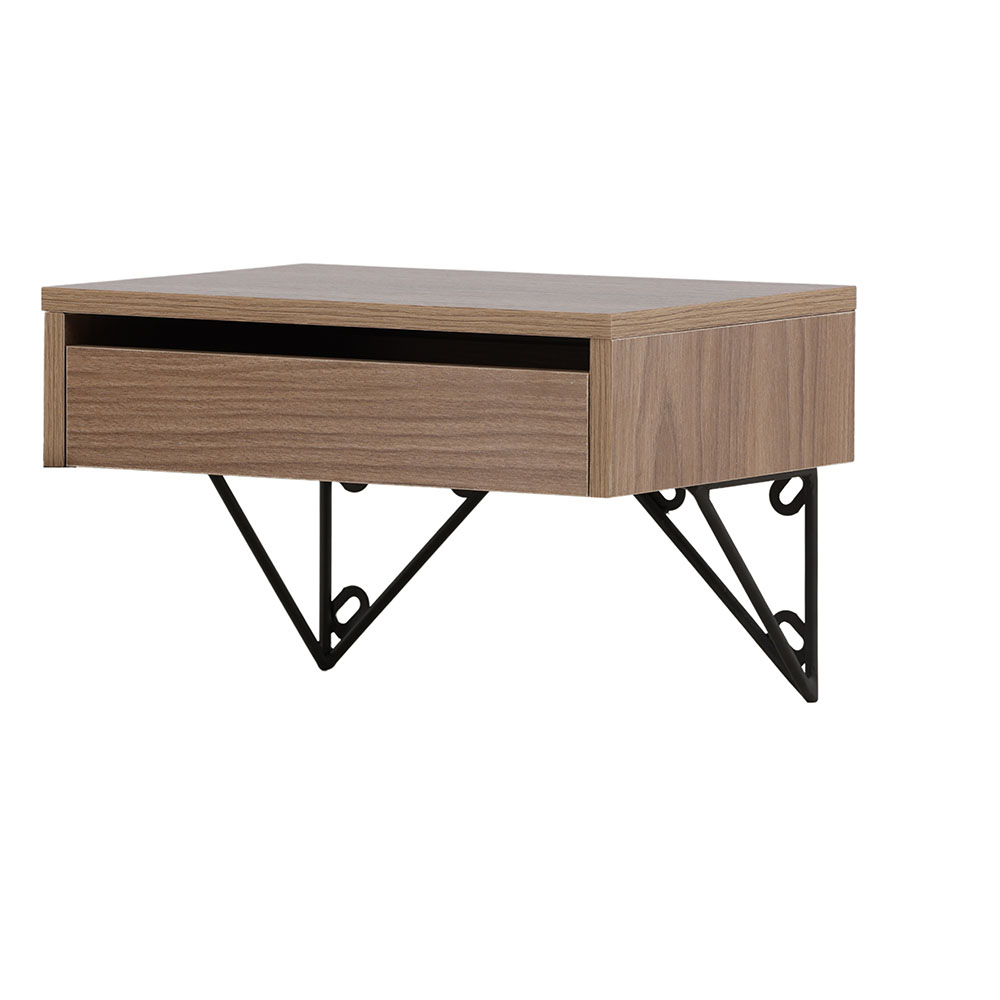 Det här smakfulla sidobordet är tillverkat i MDF med en svart stålställning och har en låda för dold förvaring. Den jordnära kulören och dekorativa upphängningen ger dig ett iögonfallande sidobord som snabbt pryder rummet!