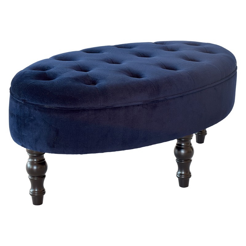 Amy är en vacker fotpall i mörkblå sammetstextil som påminner om de vackra, klassiska miljöerna.