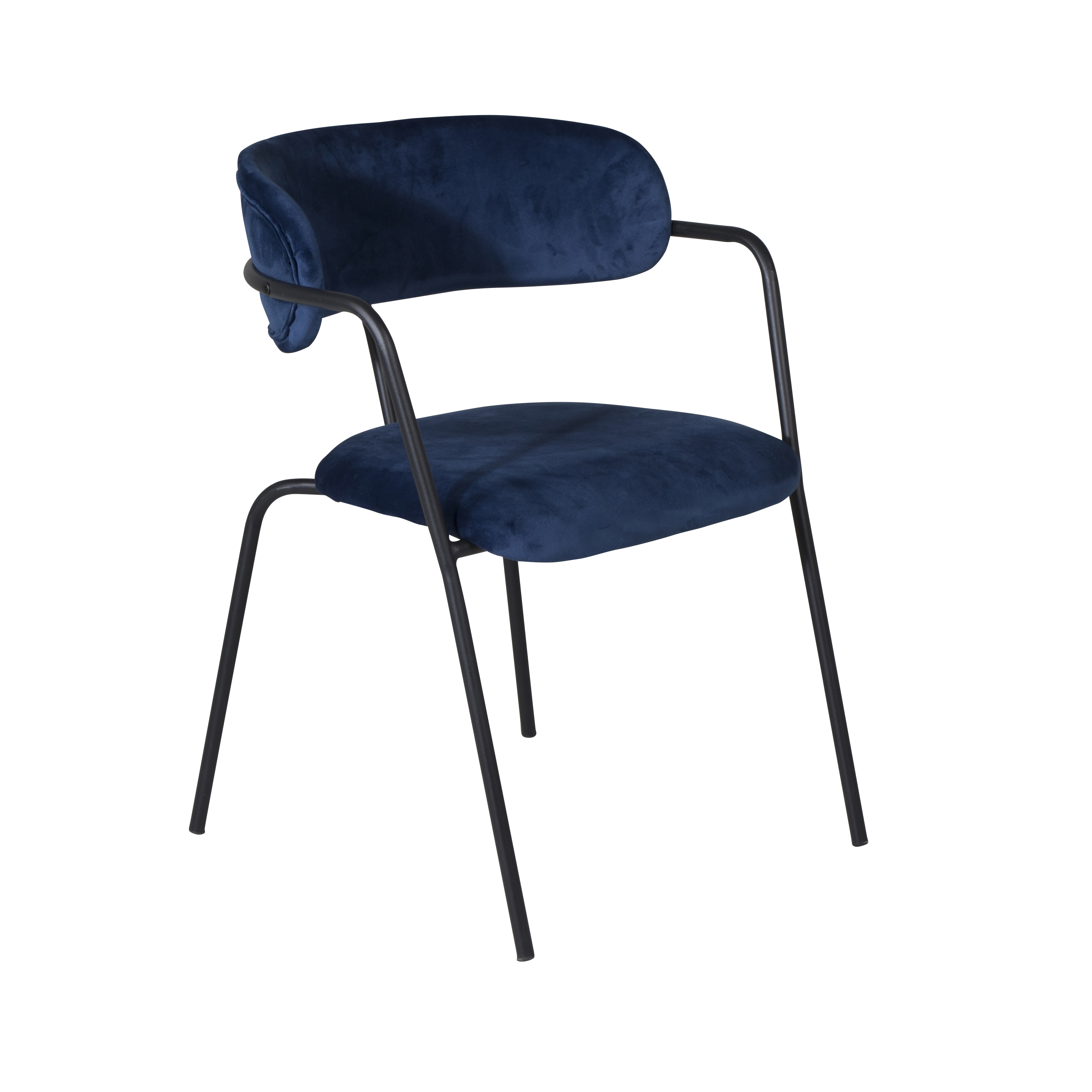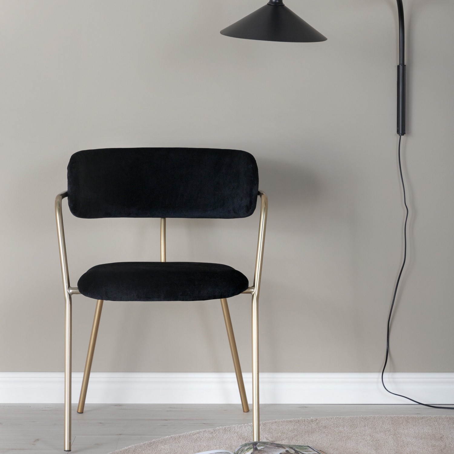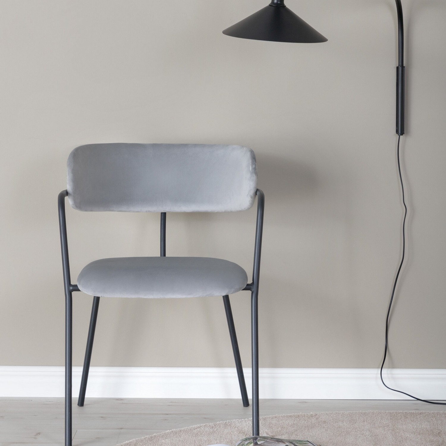 Arrow från Venture Home är en klassisk karmstol med stomme, ben samt integrerade armstöd i metall. Stolen har rundad rygg och sits i stoppat tyg.
