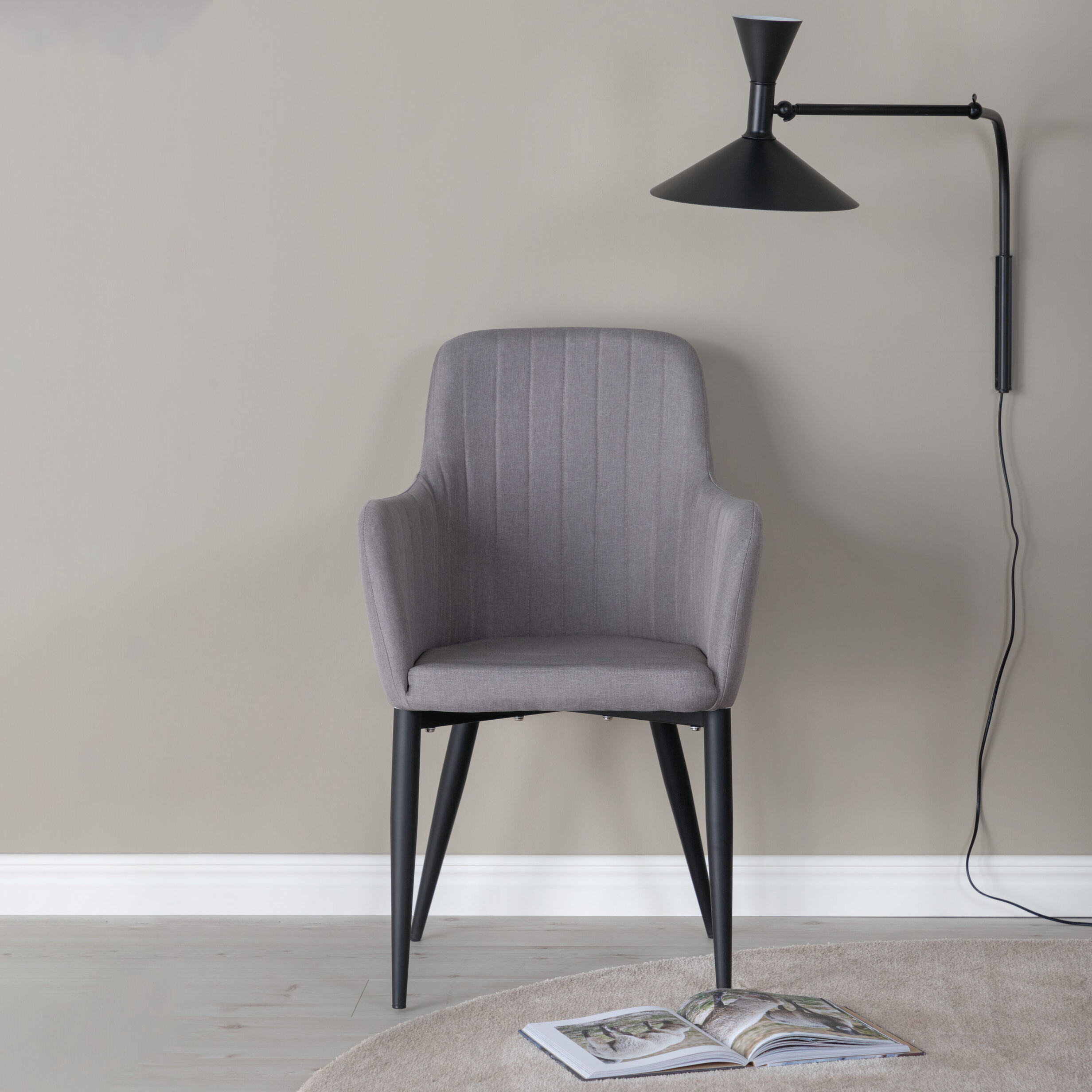 Venture Homes läckra matstol från serien Comfort i en tuff helklädd design med ben i pulverlackerad metall. Sitt bekvämt och bjud in till trivsamma måltider framöver!