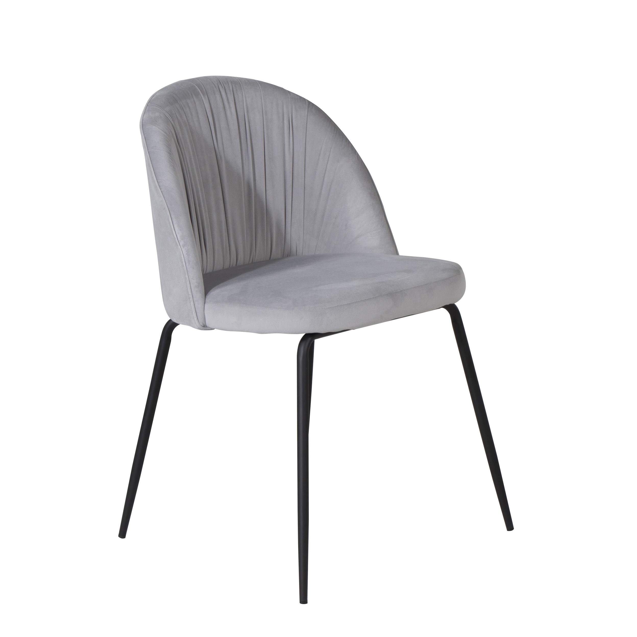Wrinkles är en matstol i exklusiv helklädd design med ben i svart, pulverlackerad metall. Stolen har rundad rygg och sits med rynkat sammetstyg och dekorsöm. Ryggen och sitsen har mjuk stoppning.