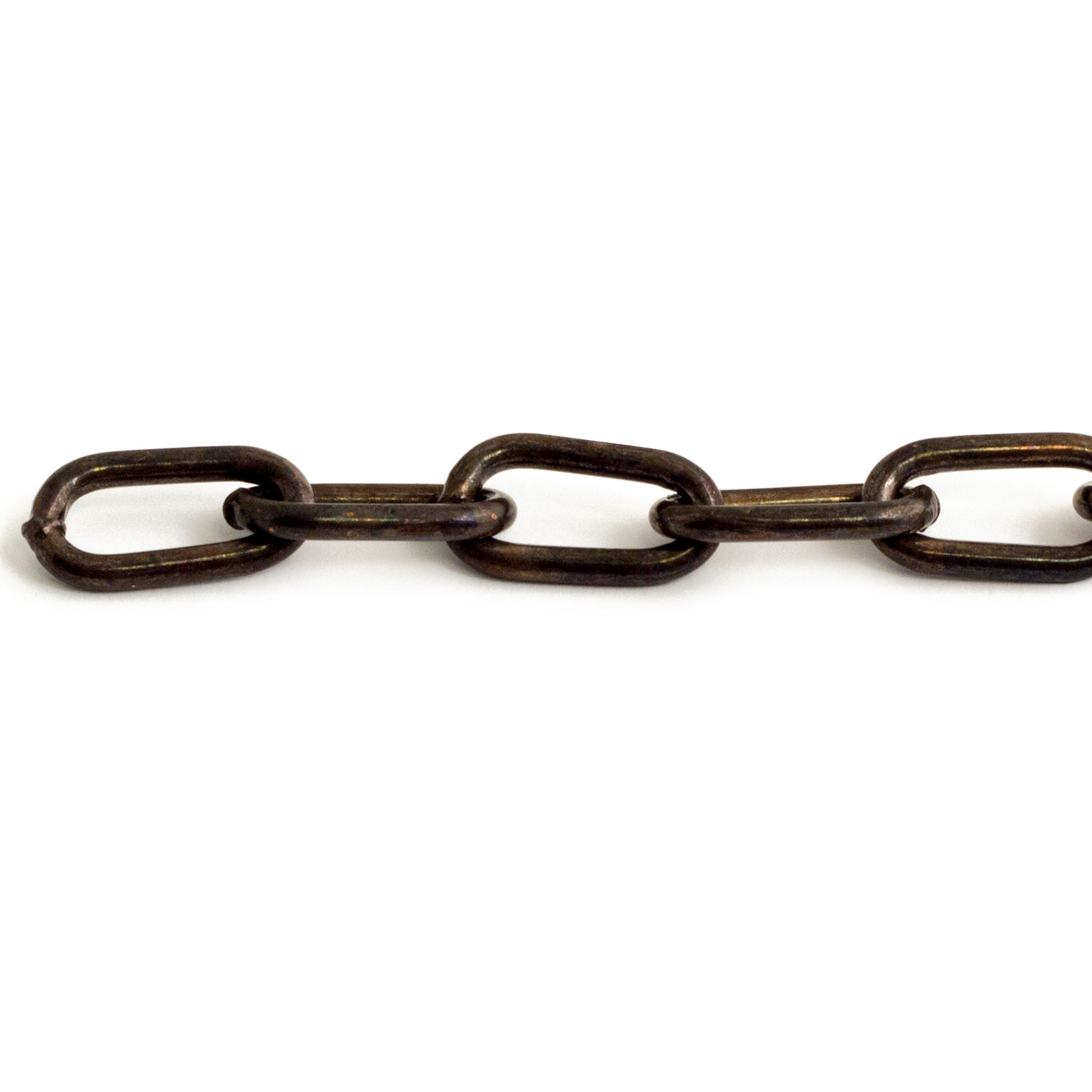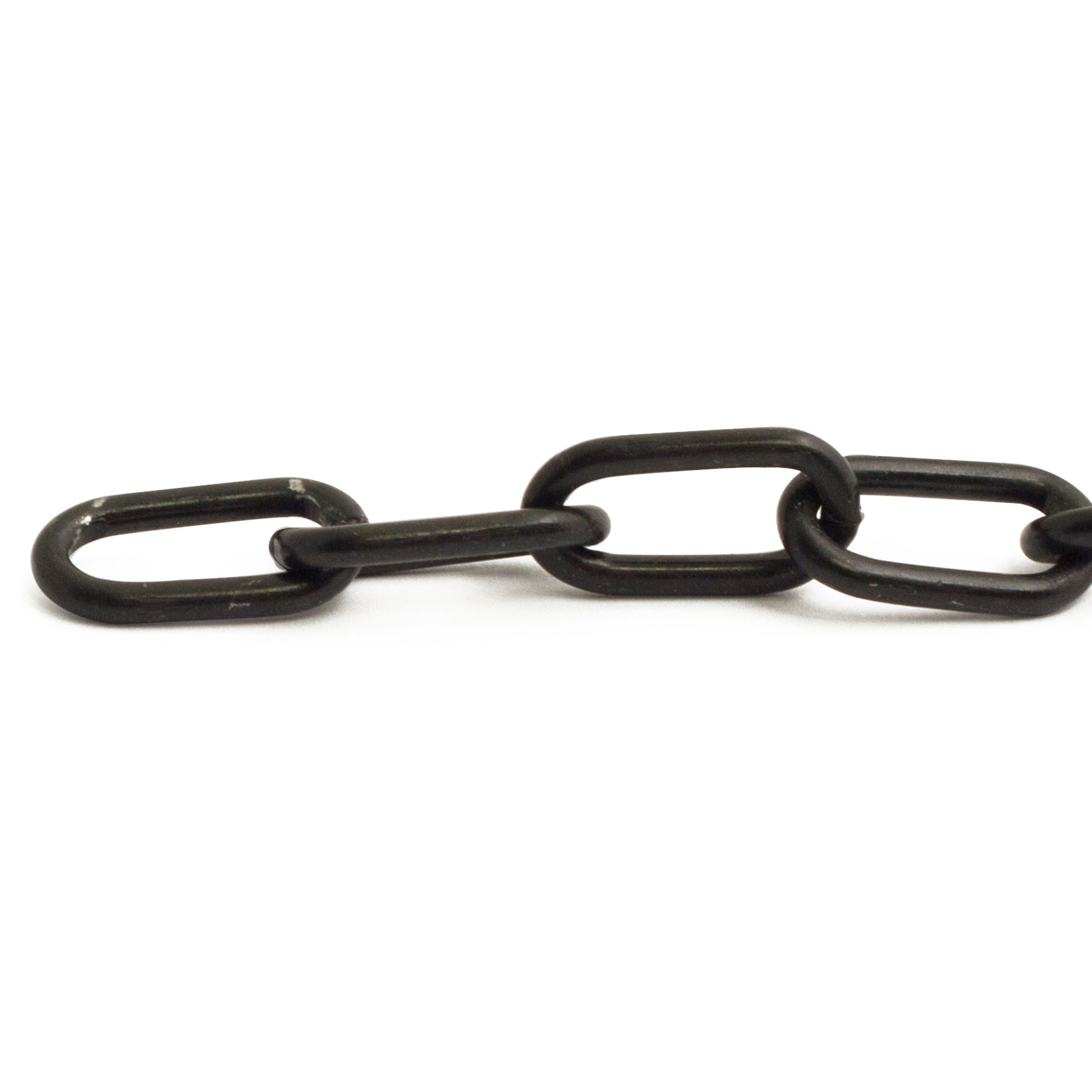 Ovallänkad dekorkätting av stål. Maxbelastning 12 kg. Detta är den belastning vi säkert vet att produkten tål. Brottgränsen, när materialet brister, är för vår kätting 5 gånger angiven maxbelastning. (Värdena är beräknade och garanteras inte)