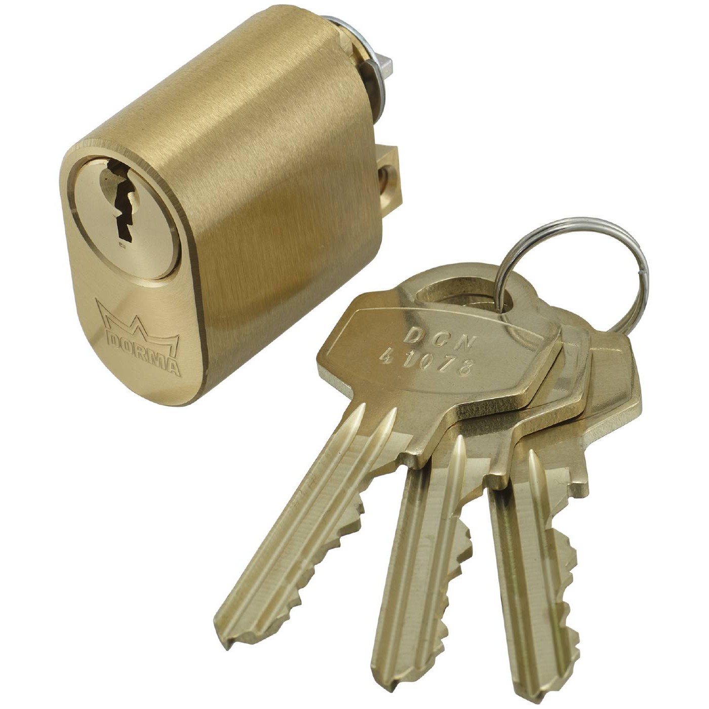 Oval låscylinder i mässing. Levereras med 3st nycklar. För skruvfastsättning genom låsstolpen.