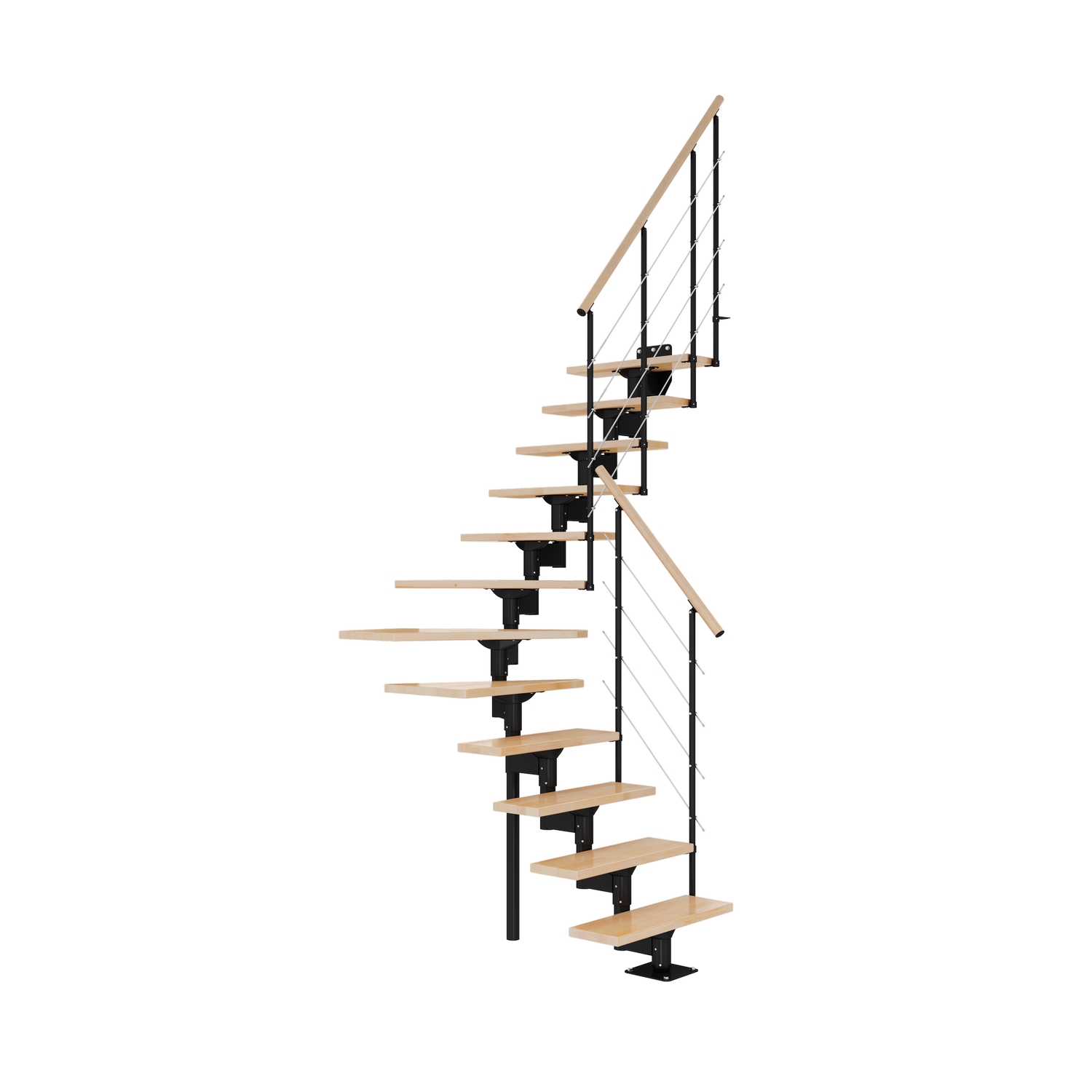 Ett skyddsräcke på en sida ingår alltid. Du kan även montera ytterligare ett skyddsräcke, eller enkelt installera trappan mot en vägg. Räcket är konstruerat för installation på trappstegets raka delar.