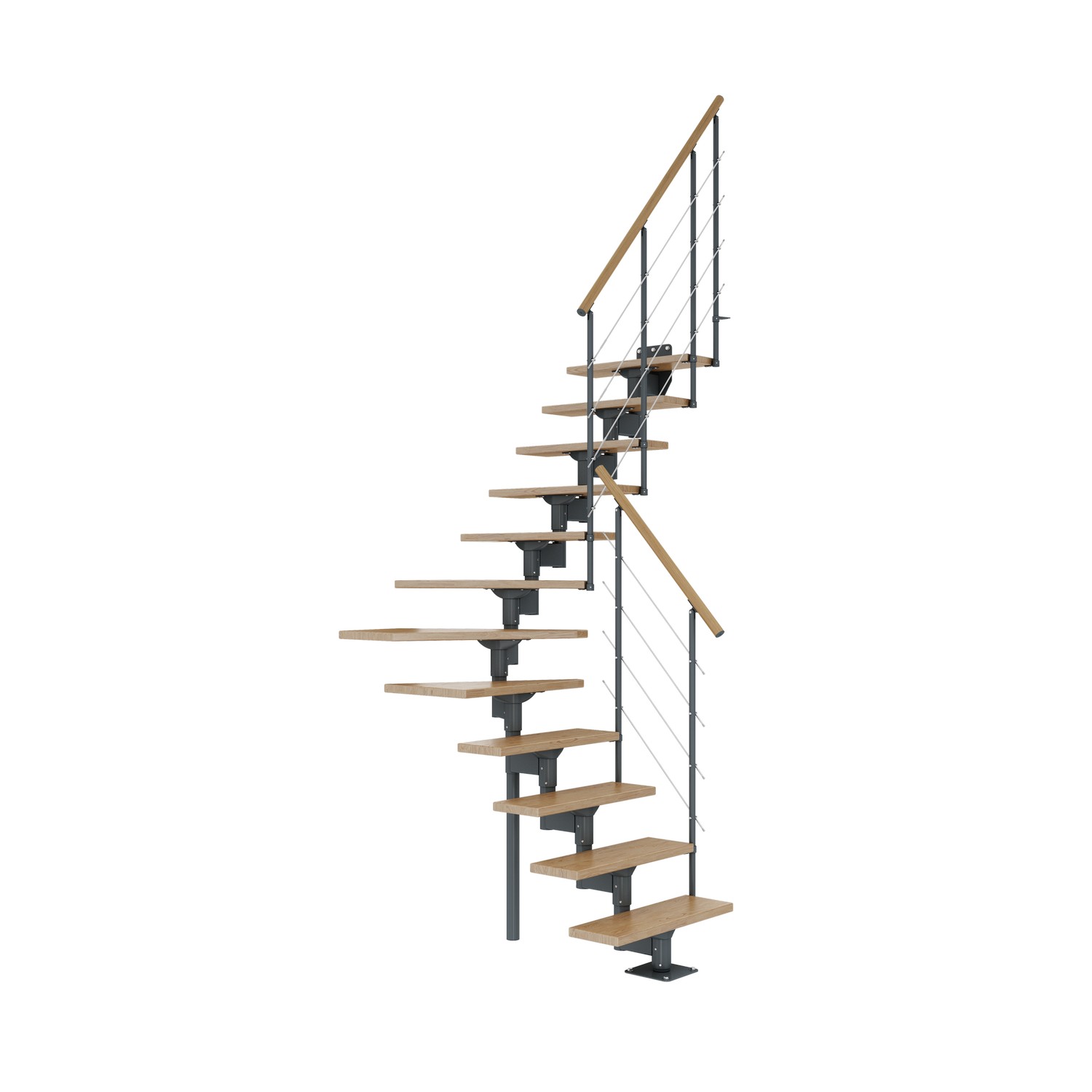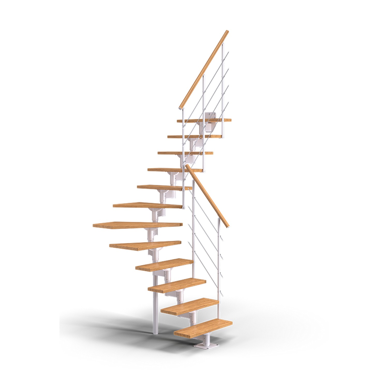 Ett skyddsräcke på en sida ingår alltid. Du kan även montera ytterligare ett skyddsräcke, eller enkelt installera trappan mot en vägg. Räcket är konstruerat för installation på trappstegets raka delar.