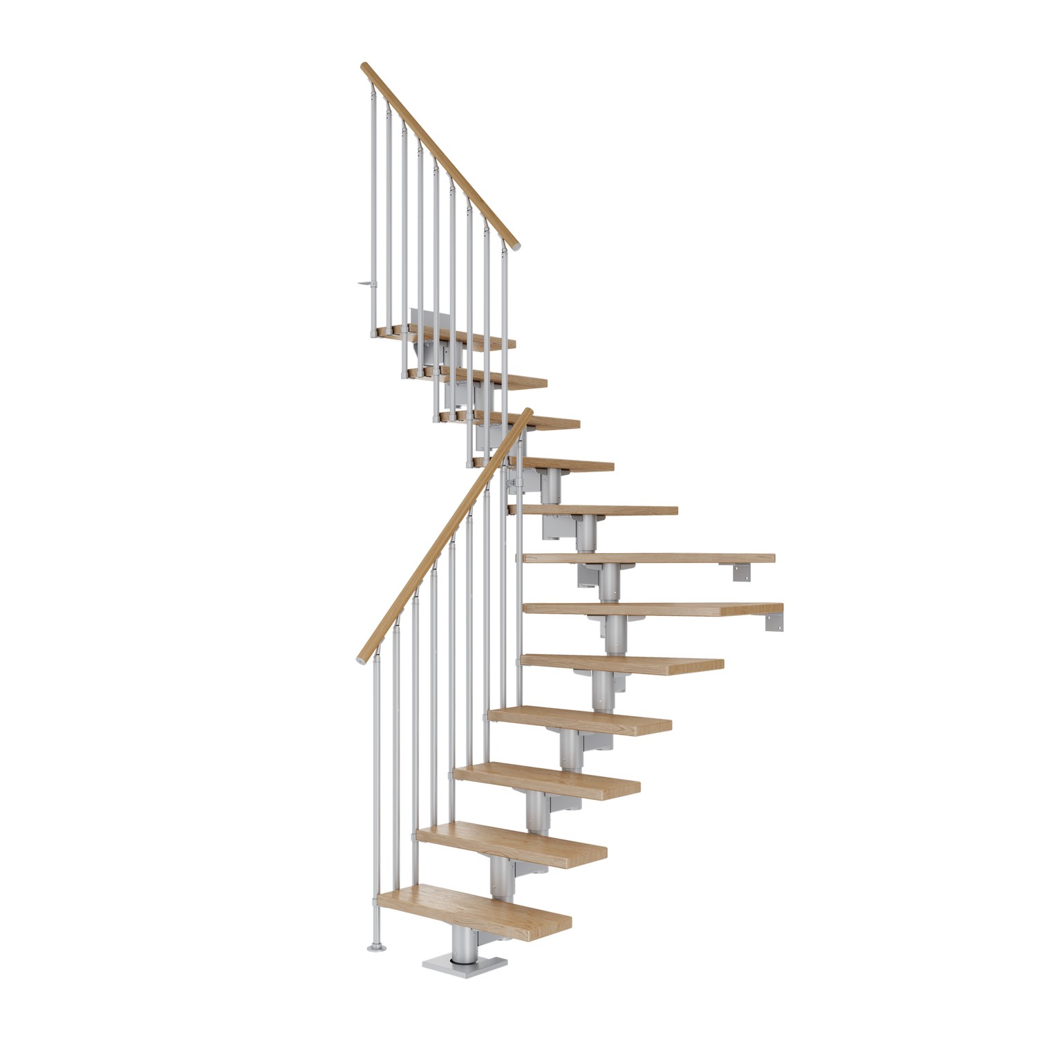 11-15 trappsteg i massivt trä ingår för CORK-trappor med en golv-till-golvhöjd på upp till 360 cm. När du installerar stegen med mer än 13 steg måste en stabiliserande stödstolpe installeras med. Detta ingår i paketet. För en lägre trappa tas överflödiga steg enkelt bort. Stegen har en hållbar och reptålig yta som är lätt att underhålla tack vare den halvblanka lacken. Höjden på varje steg kan ställas in mellan 18,5 och 22,5 cm.