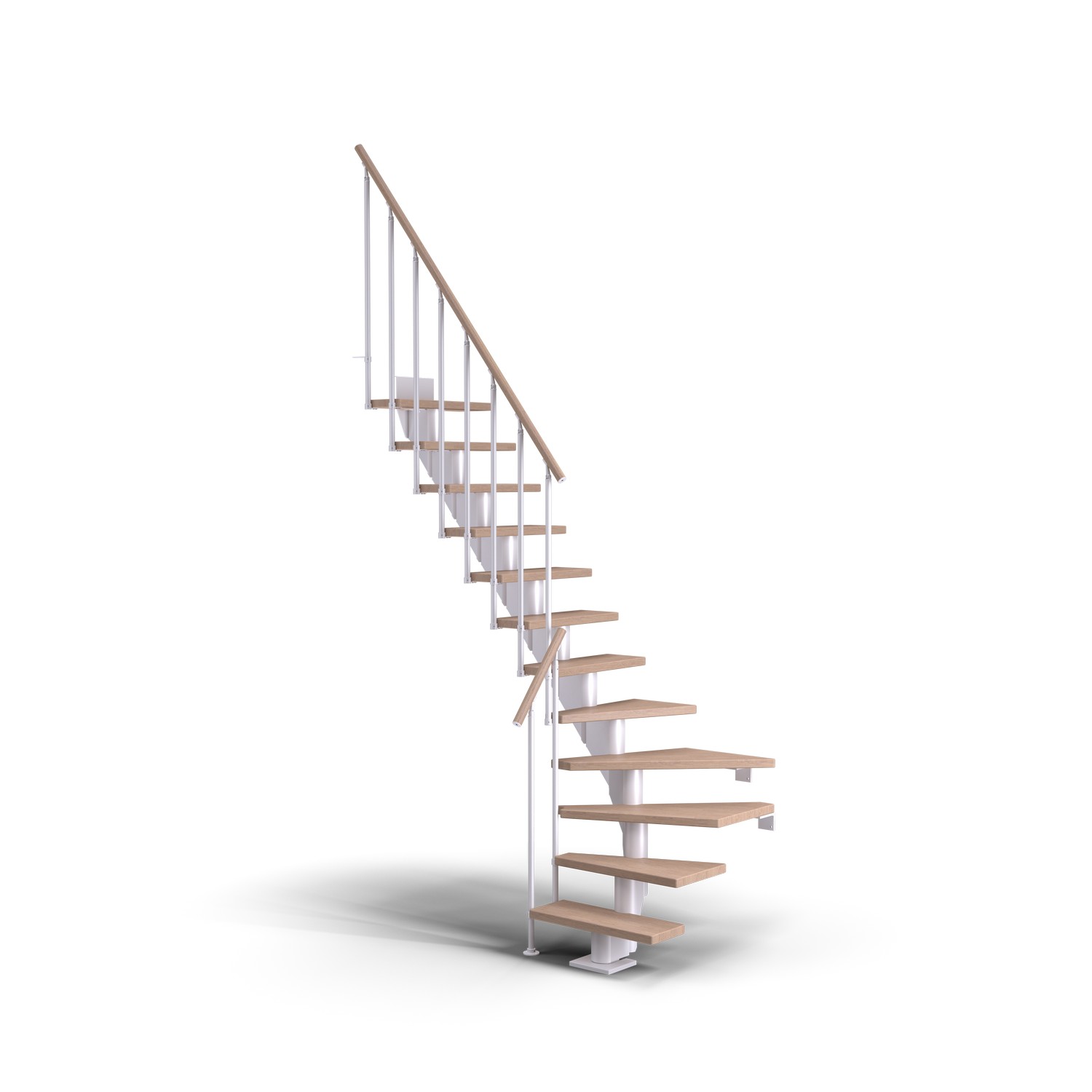 Genom att forma trappans modulära struktur till ditt rum skapas ett helt unikt intryck. Upp till 13 steg ingår, vilket ger en maximal golvhöjd på 301 cm. Varje steg har en justerbar höjd mellan 18,5 och 21,5 cm. Väggfästen ingår för att öka trappans stabilitet. Dolles steg och räcken är gjorda av högkvalitativt FSC®-certifierat trä förseglat med olja. Trapporna har fått en miljövänlig ytbehandling för att lyfta fram de estetiska elementen i träet med en naturlig finish. Njut av känslan av en trappa med kvalitetsträ!