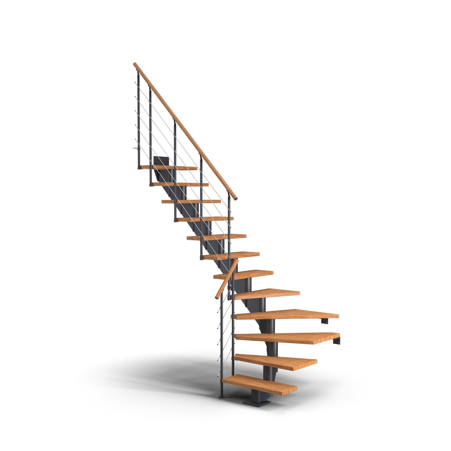 Skapa ett unikt intryck i ditt hem genom att anpassa trappformatet till rummets behov. Hamburg har upp till 14 steg som ger en maximal höjd från golv till golv på 322 cm. Varje steg har en justerbar höjd mellan 18,5 och 21,5 cm. Väggfästen ingår för att säkerställa hög stabilitet i trappan. Breda och djupa trappsteg i kombination med ett stabilt skyddsräcke gör trappan otroligt säker och bekväm att använda.