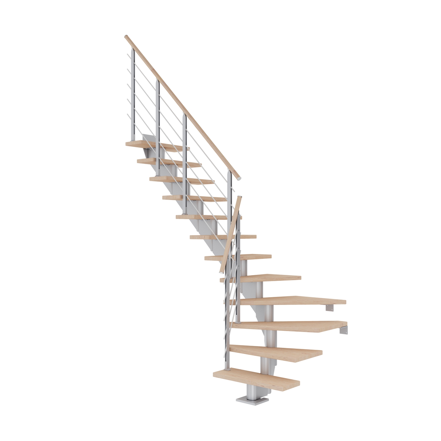Skapa ett unikt intryck i ditt hem genom att anpassa trappformatet till rummets behov. Hamburg har upp till 14 steg som ger en maximal höjd från golv till golv på 322 cm. Varje steg har en justerbar höjd mellan 18,5 och 21,5 cm. Väggfästen ingår för att säkerställa hög stabilitet i trappan. Breda och djupa trappsteg i kombination med ett stabilt skyddsräcke gör trappan otroligt säker och bekväm att använda.