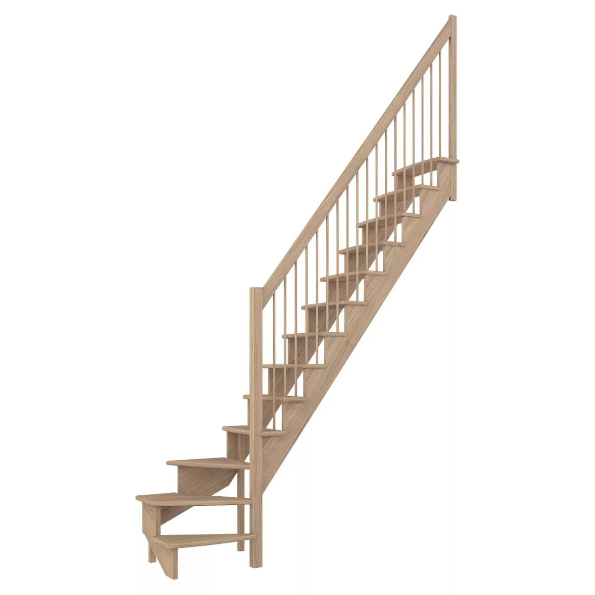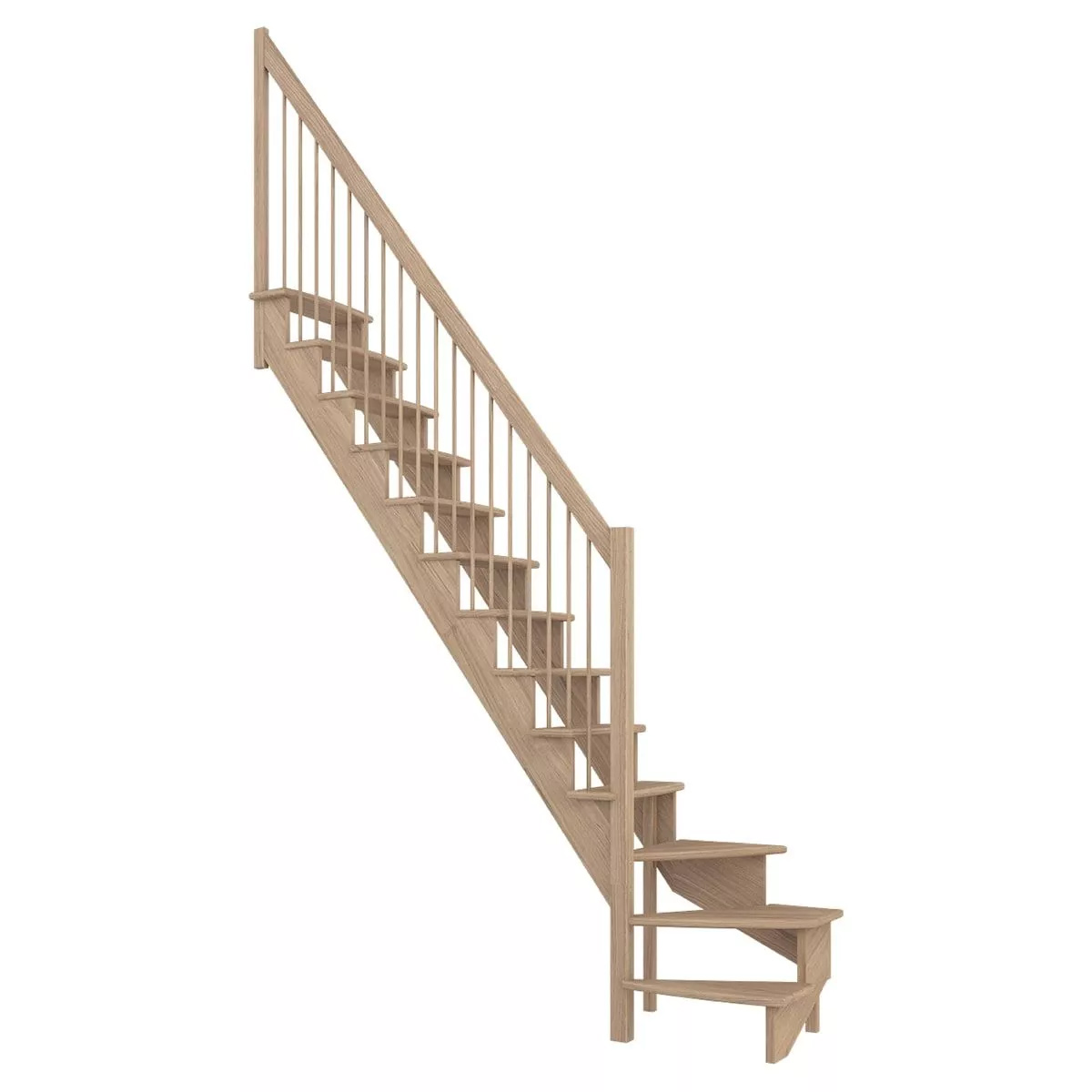 Lyon är en platsbesparande trappa från Dolle med träräcke. Trappan är tillverkad i massiv ek med 21 cm djupa och lätt rundade steg som ger en bekväm yta att gå på.