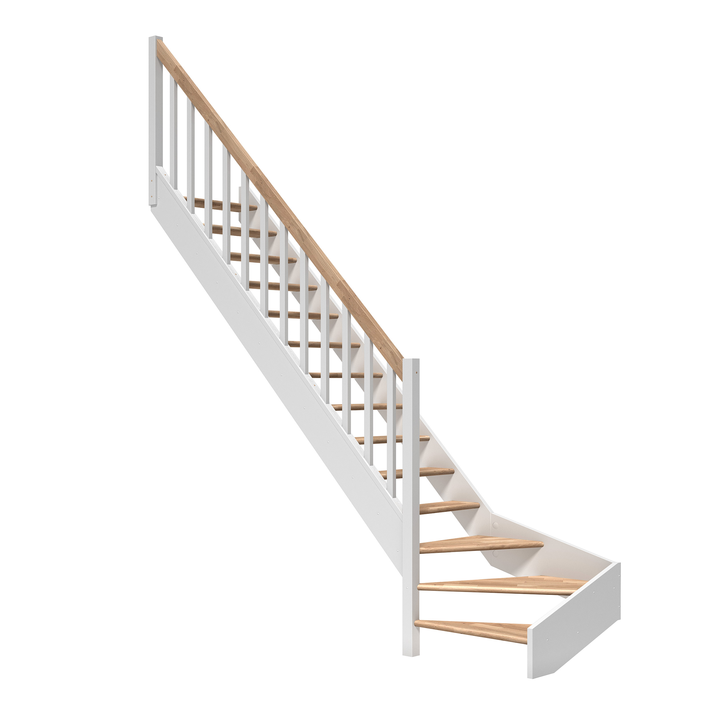 Spartrappa DolleParis L-form med Fyrkantigt Räcke utan SättstegLackad Ek, Vänstersvängd
