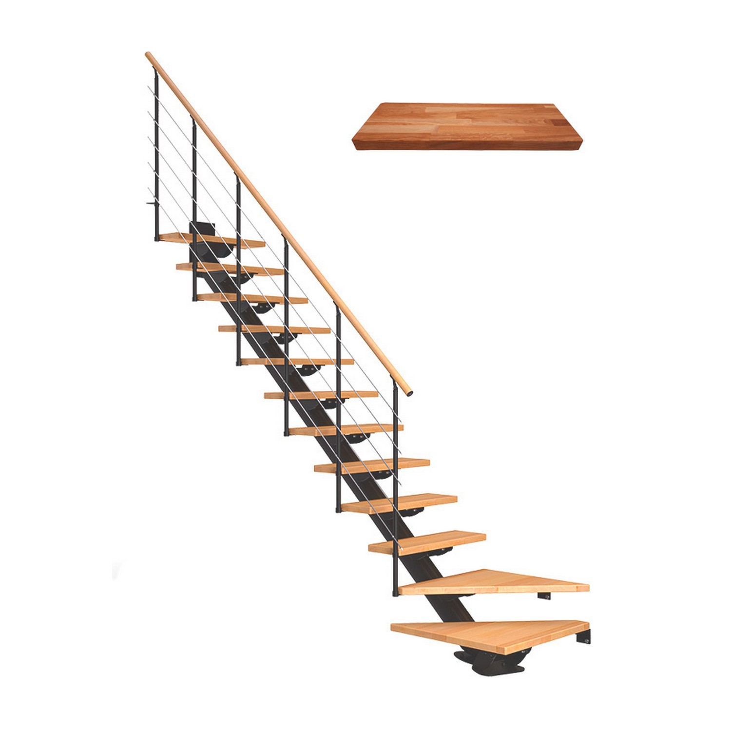 Dolles modulära satstrappor är mycket lätta att installera och monteringen kräver inga specialverktyg. Dolles monteringsanvisningar och videor visar dig steg för steg hur du gör det själv. Eftersom trä är en naturprodukt förbehåller vi oss att träets naturliga färg kan variera från trappa till trappa. Bildernas färgåtergivning avspeglar därför inte alltid trädets färg exakt.