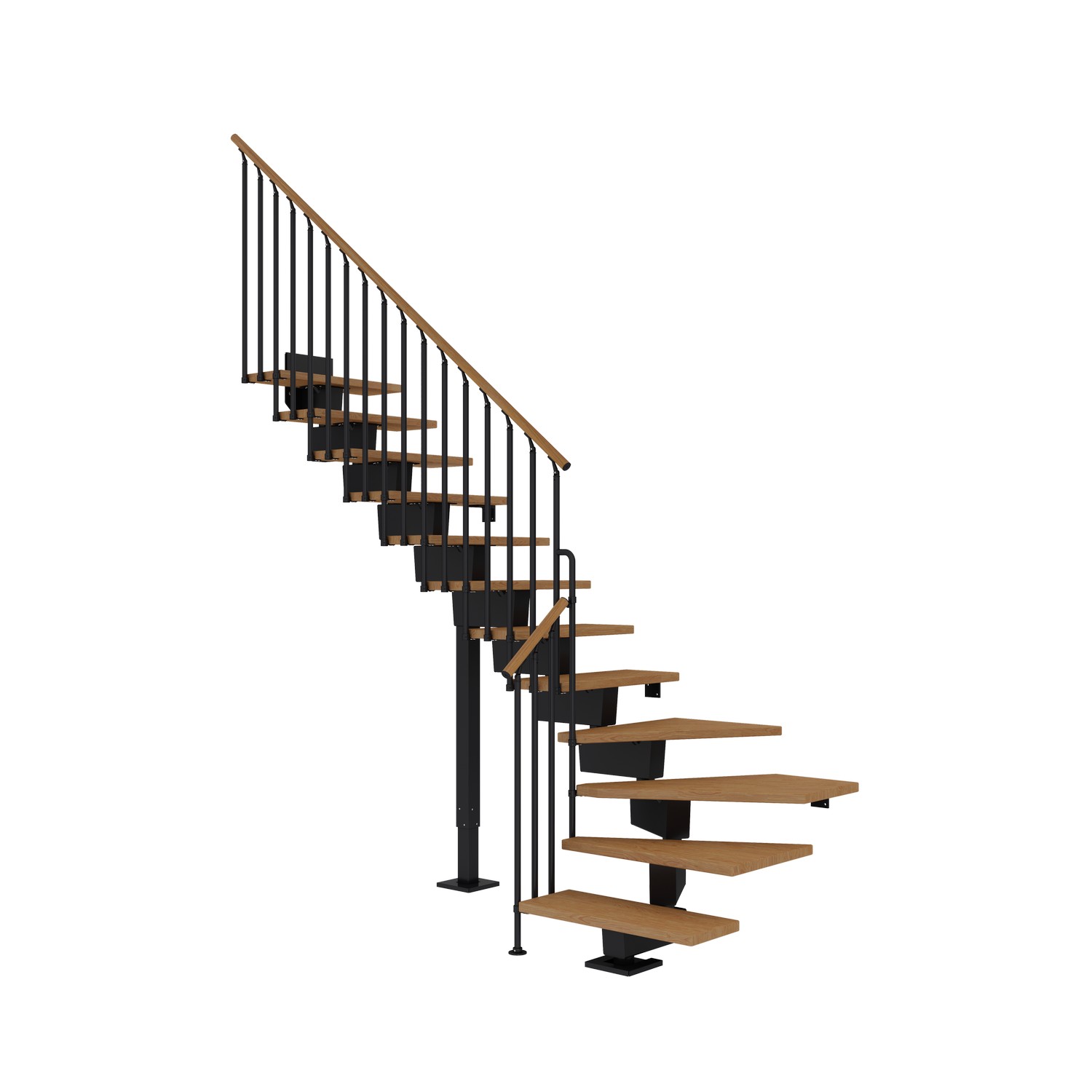 Trappan har fullt justerbar trapphöjd, steghöjd och platsbehov i rummet, vilket gör trappan till ett säkert och flexibelt val, då den kommer att passa alla behov. Utöver trappans innovativa och flexibla konstruktion har trappan även ett överflöd av anpassningsmöjligheter när det kommer till färg, trä och räckestyp, så att du enkelt kan få trappan att passa just din inredningsstil och ditt favoritträ.