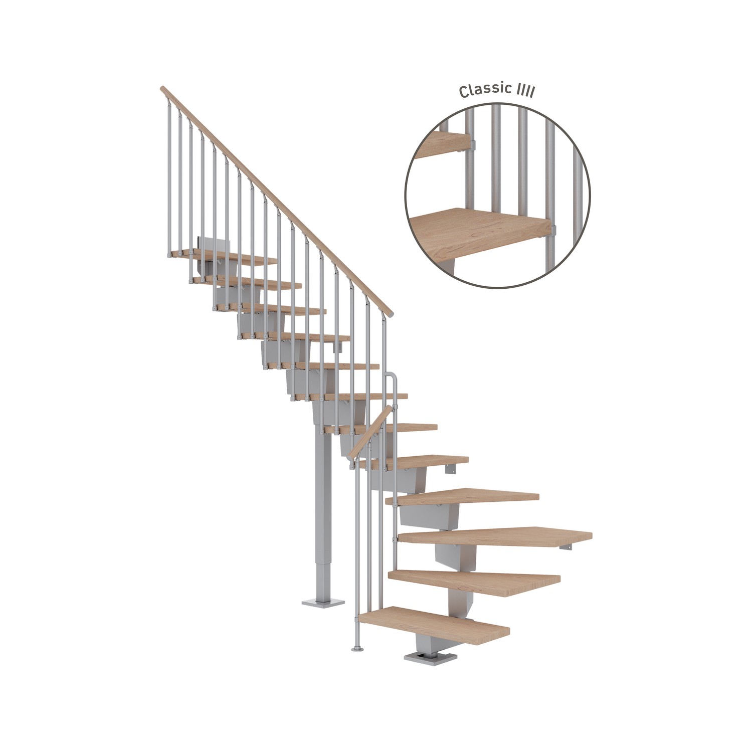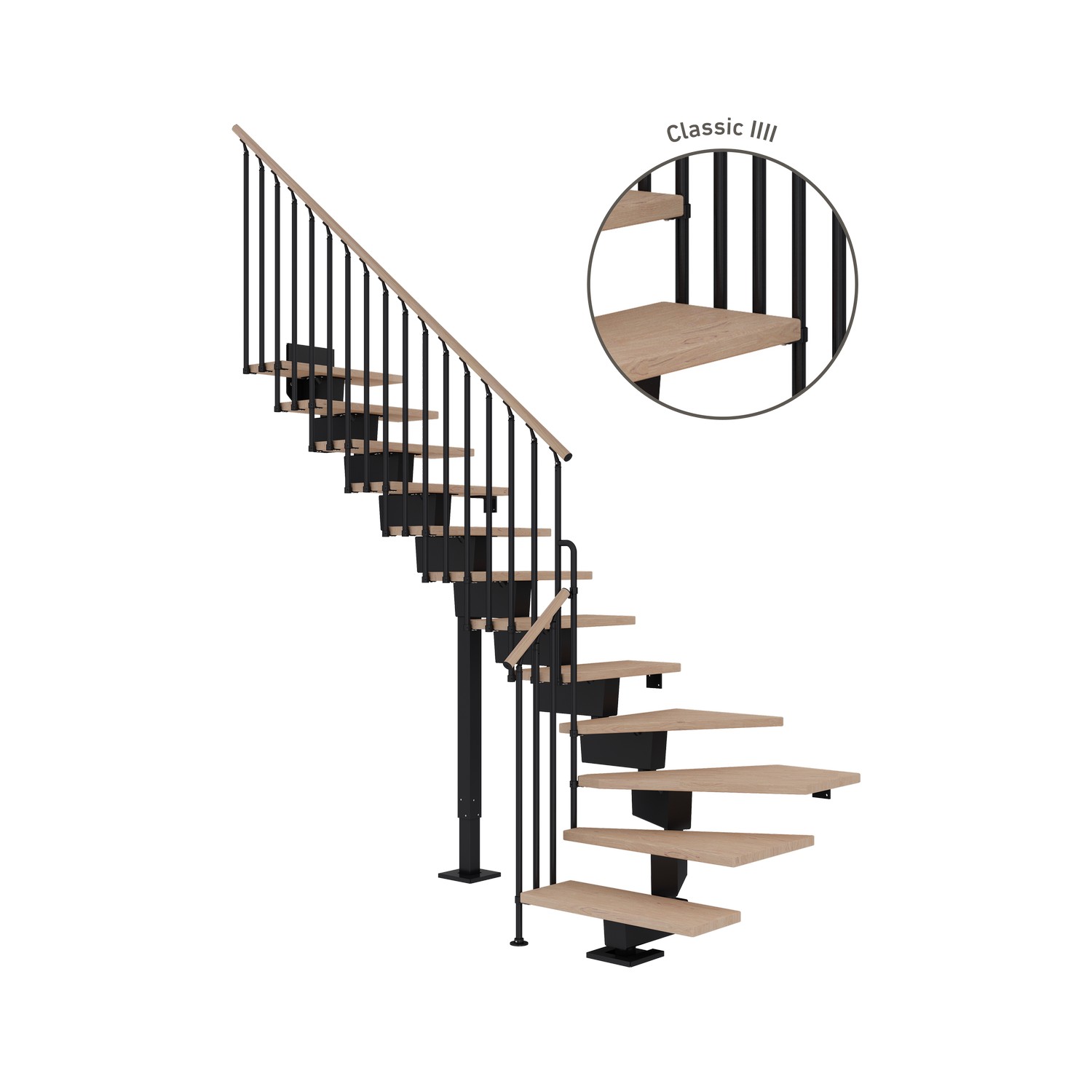 Vinkeltrappa DolleDubai Ek Vit Oljad 1/4 Classic IIIIAntracit, Max Takhöjd: 2720-3360 mm, Antal Steg: 15 st