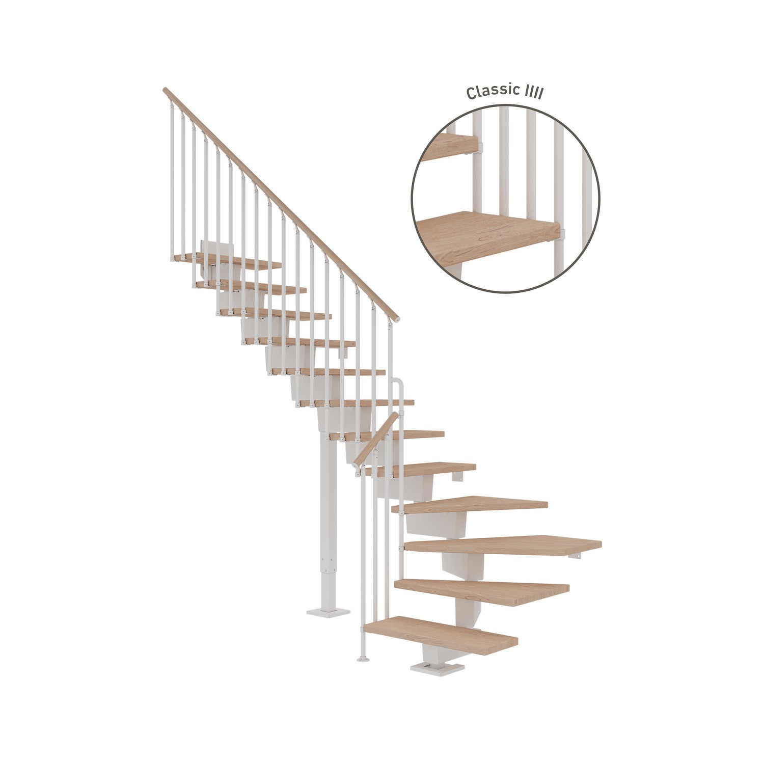 Vinkeltrappa Dolle Dubai Ek Vit Oljad 1/4 Classic IIII är en modern huvudtrappa med högsta komfort. Dubai är en modern och Skandinavien-inspirerad huvudtrappa, som med sin lätta och eleganta design passar perfekt in i den nordiska, moderna stilen.