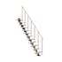 11-15 massiva trästeg ingår som ger en maximal golv-till-golvhöjd på 360 cm. Vid 13-15 steg är det nödvändigt att installera stödstolparna som ingår i paketet. Om golv-till-golvhöjden inte är nödvändig avlägsnas steg helt enkelt tills önskad höjd nås. Trappans ytor är otroligt slitstarka, tål repor och är lätta att underhålla tack vare den halvblanka ytan. Höjden på varje steg kan justeras mellan 18,5 och 22,5 cm.
