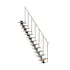 11-15 massiva trästeg ingår som ger en maximal golv-till-golvhöjd på 360 cm. Vid 13-15 steg är det nödvändigt att installera stödstolparna som ingår i paketet. Om golv-till-golvhöjden inte är nödvändig avlägsnas steg helt enkelt tills önskad höjd nås. Trappans ytor är otroligt slitstarka, tål repor och är lätta att underhålla tack vare den halvblanka ytan. Höjden på varje steg kan justeras mellan 18,5 och 22,5 cm.
