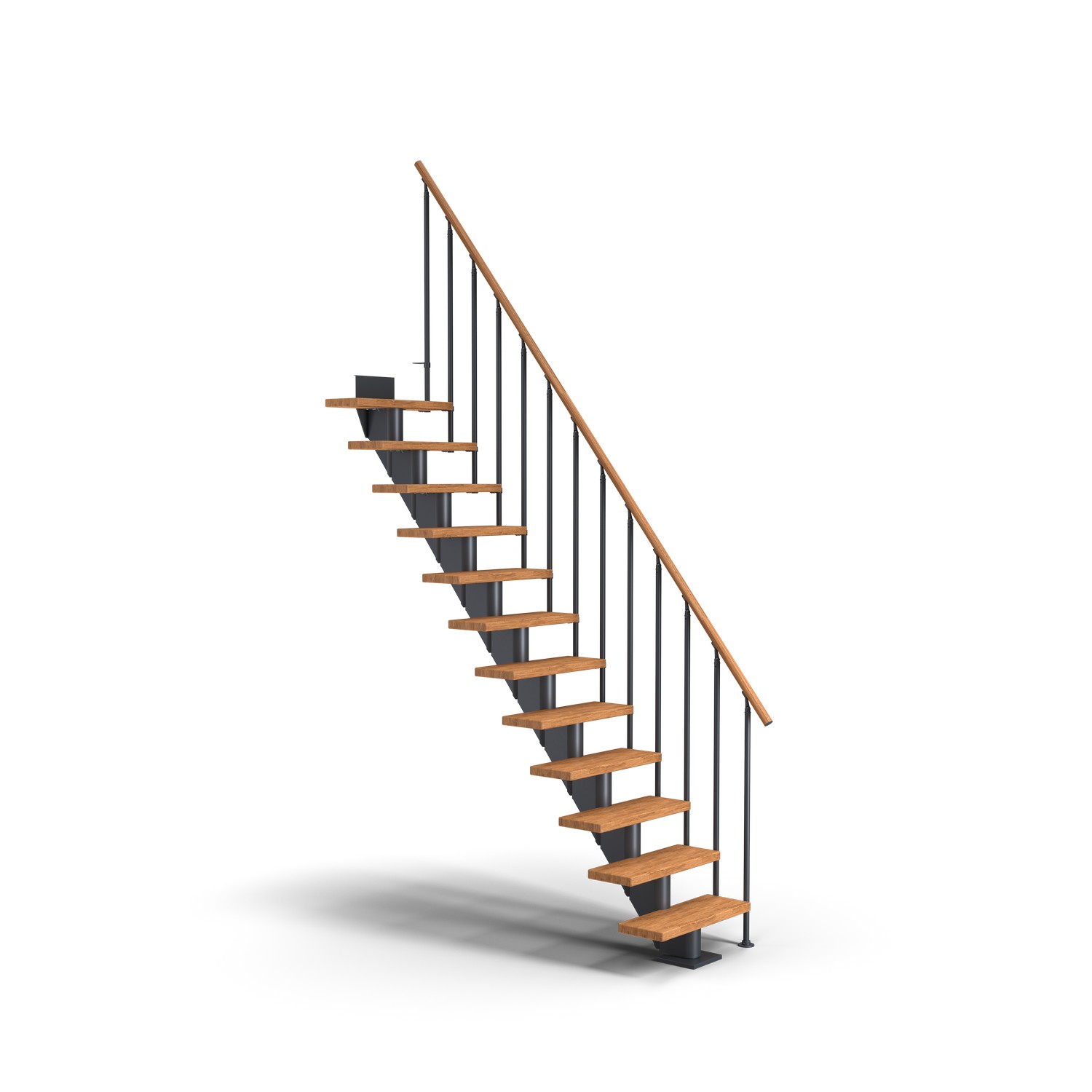 Frankfurt är en modulär trappa designad för dig som saknar utrymme men inte vill äventyra säkerhet, komfort och kvalitet. Dolles steg och räcken är gjorda av högkvalitativt FSC®-certifierat trä som är speciellt utvalt för att ge en exklusiv och elegant trappa. Strukturelementen är gjorda av pulverlackerat stål i olika färger med en halvblank yta – för en naturlig elegans. Med den modulära designen är trappan enkel att installera. En enkel videoguide ingår där du kan se hur du själv kan installera din nya trappa - enkelt och snabbt.