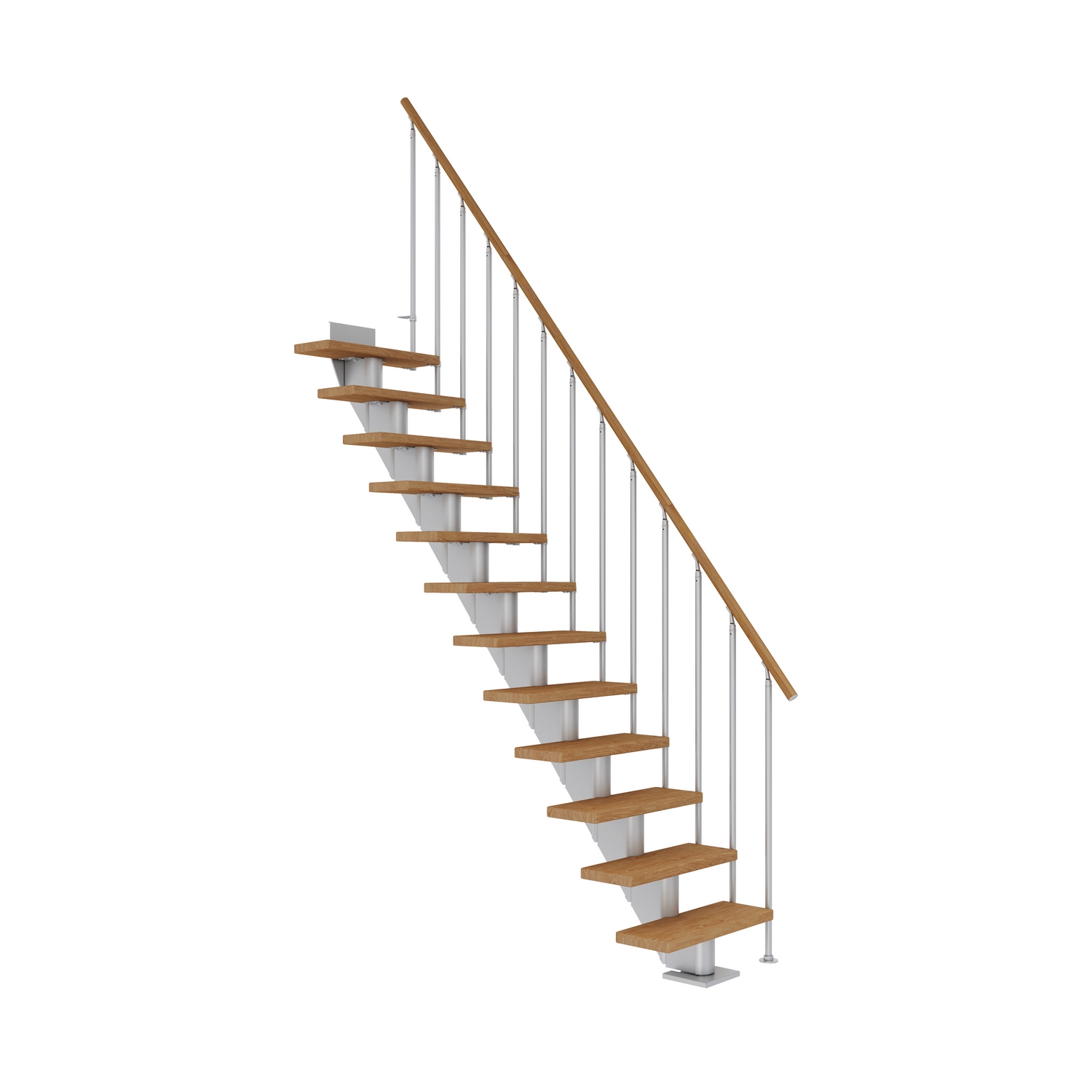 Genom att forma trappans modulära struktur till ditt rum skapas ett helt unikt intryck. Upp till 13 steg ingår, vilket ger en maximal golvhöjd på 301 cm. Varje steg har en justerbar höjd mellan 18,5 och 21,5 cm. Väggfästen ingår för att öka trappans stabilitet. Dolles steg och räcken är gjorda av högkvalitativt FSC®-certifierat trä förseglat med olja. Trapporna har fått en miljövänlig ytbehandling för att lyfta fram de estetiska elementen i träet med en naturlig finish. Njut av känslan av en trappa med kvalitetsträ!