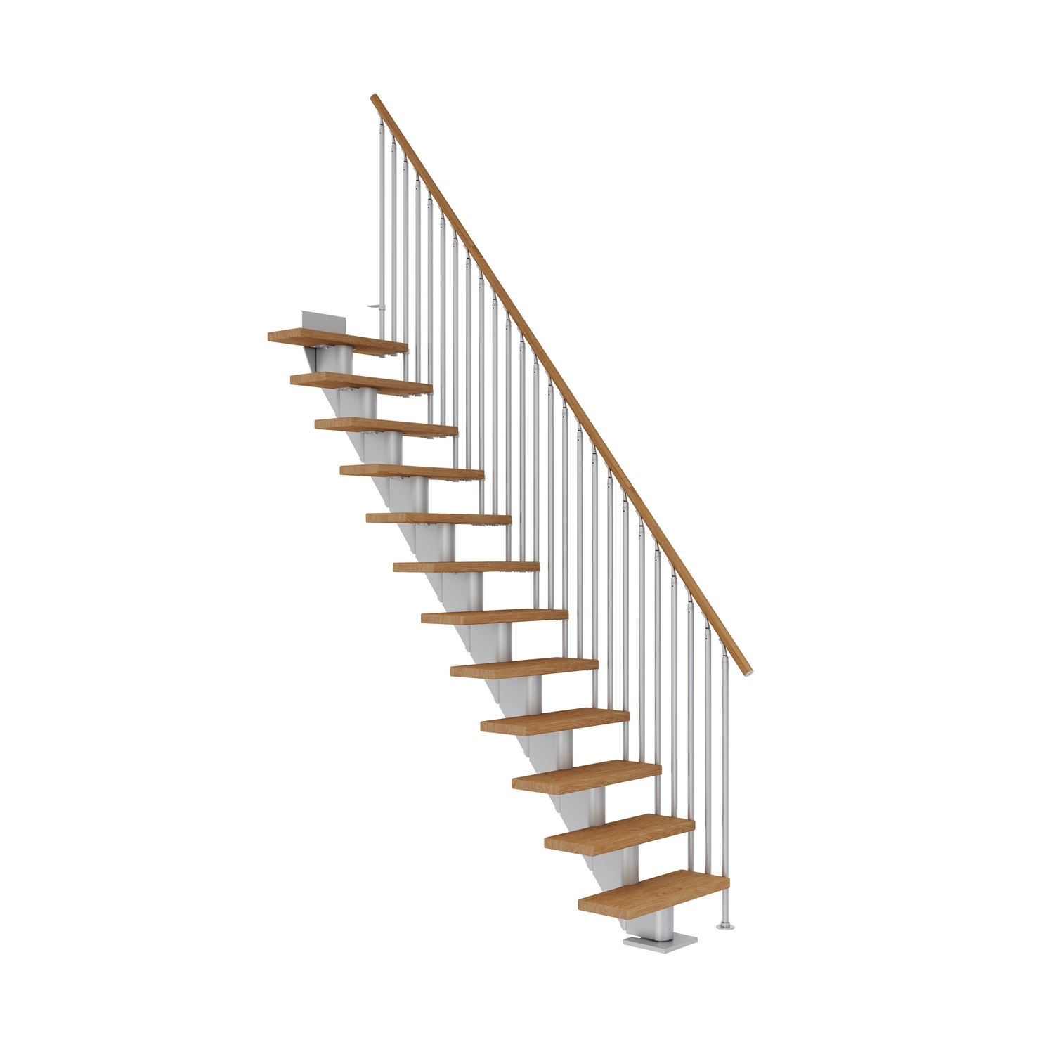 Genom att forma trappans modulära struktur till ditt rum skapas ett helt unikt intryck. Upp till 13 steg ingår, vilket ger en maximal golvhöjd på 301 cm. Varje steg har en justerbar höjd mellan 18,5 och 21,5 cm. Väggfästen ingår för att öka trappans stabilitet. Dolles steg och räcken är gjorda av högkvalitativt FSC®-certifierat trä förseglat med olja. Trapporna har fått en miljövänlig ytbehandling för att lyfta fram de estetiska elementen i träet med en naturlig finish. Njut av känslan av en trappa med kvalitetsträ!