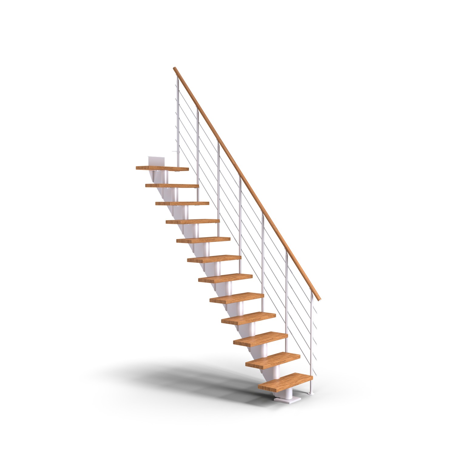 Genom att forma trappans modulära struktur till ditt rum skapas ett helt unikt intryck. Upp till 13 steg ingår, vilket ger en maximal golvhöjd på 301 cm. Varje steg har en justerbar höjd mellan 18,5 och 21,5 cm. Väggfästen ingår för att öka trappans stabilitet. Dolles steg och räcken är gjorda av högkvalitativt FSC®-certifierat trä förseglat med olja. Trapporna har fått en miljövänlig ytbehandling för att lyfta fram de estetiska elementen i träet med en naturlig finish. Njut av känslan av en trappa med kvalitetsträ!
