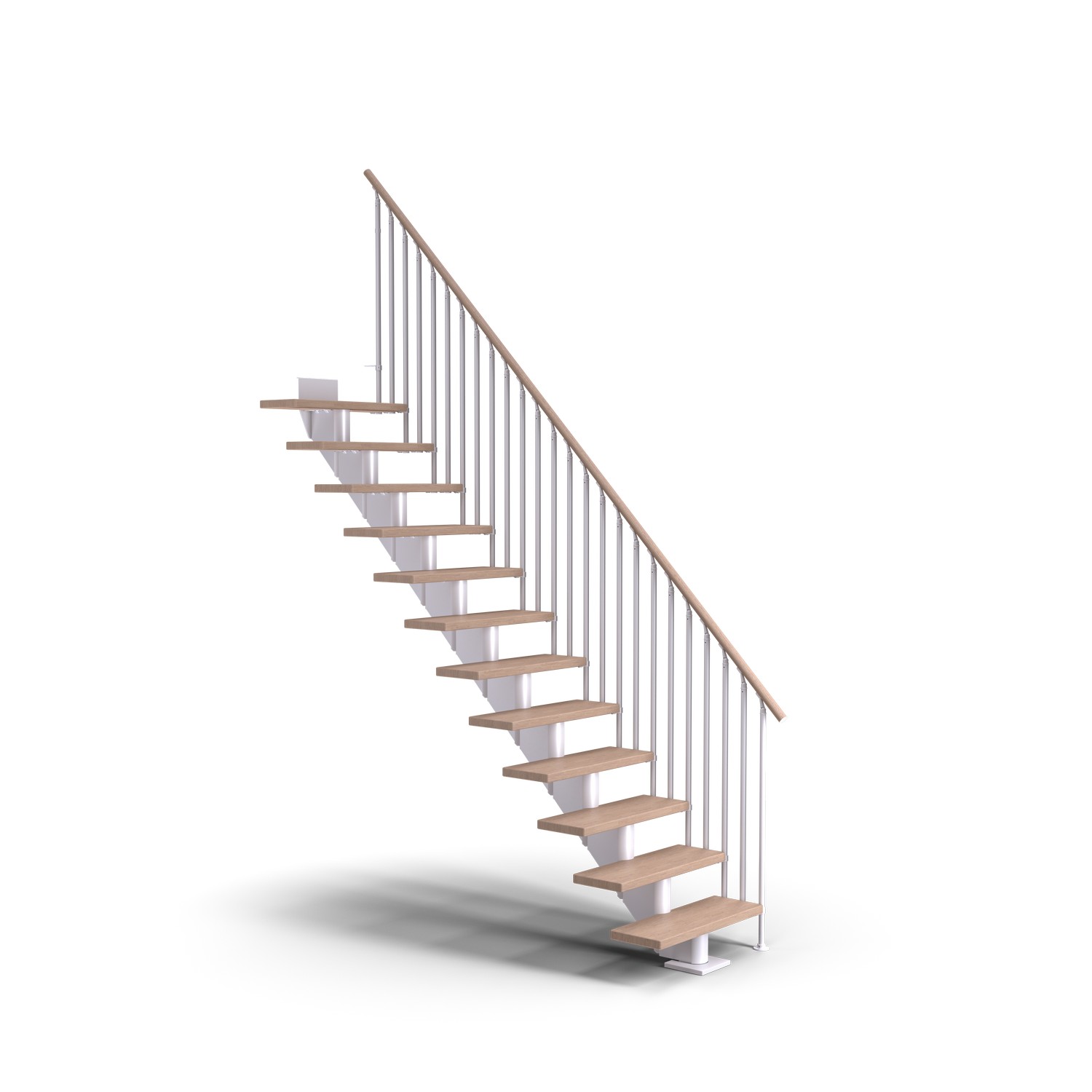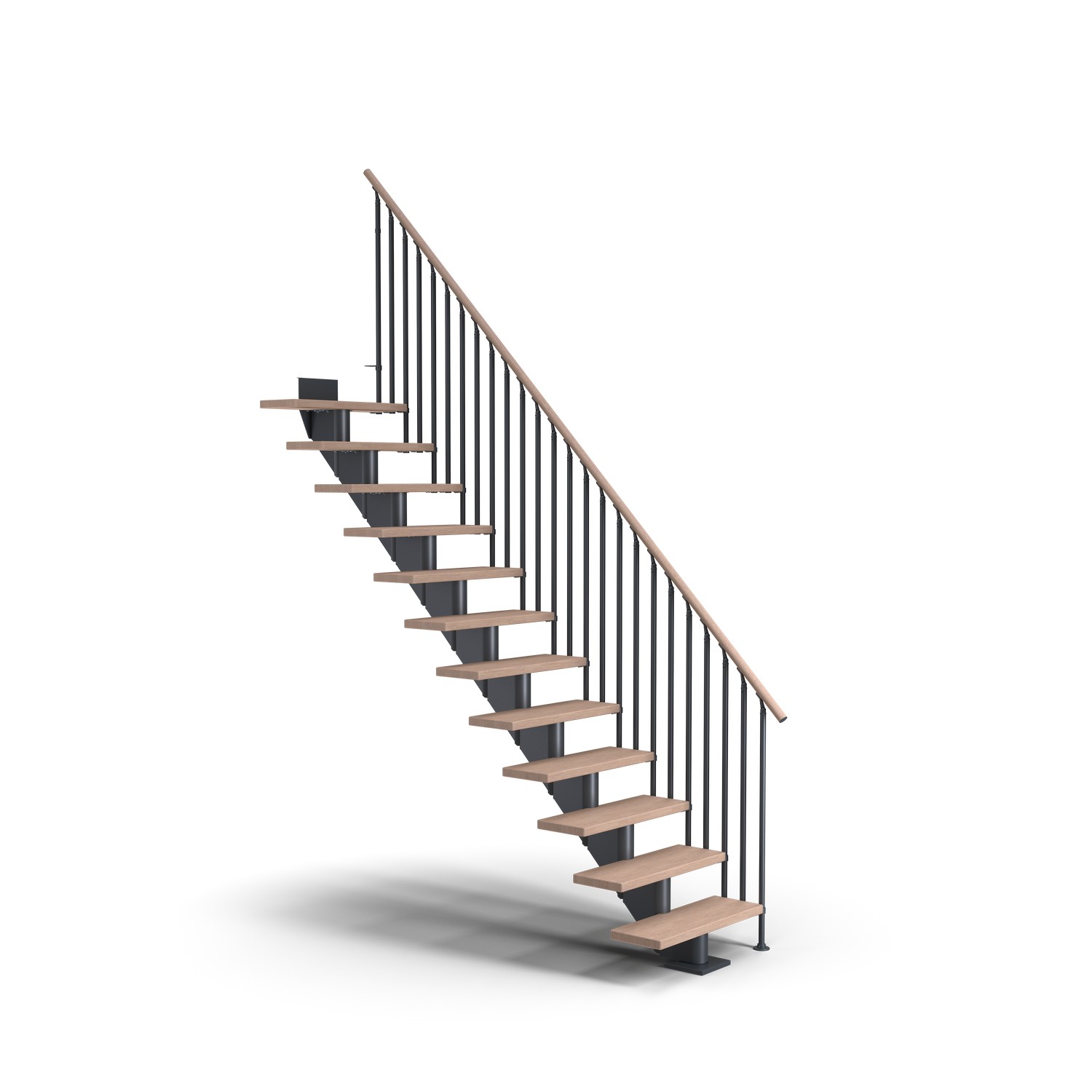 Skapa ett unikt intryck i ditt hem genom att anpassa trappformatet till rummets behov. Hamburg har upp till 14 steg som ger en maximal höjd från golv till golv på 322 cm. Varje steg har en justerbar höjd mellan 18,5 och 21,5 cm. Väggfästen ingår för att säkerställa hög stabilitet i trappan. Breda och djupa trappsteg i kombination med ett stabilt skyddsräcke gör trappan otroligt säker och bekväm att använda.