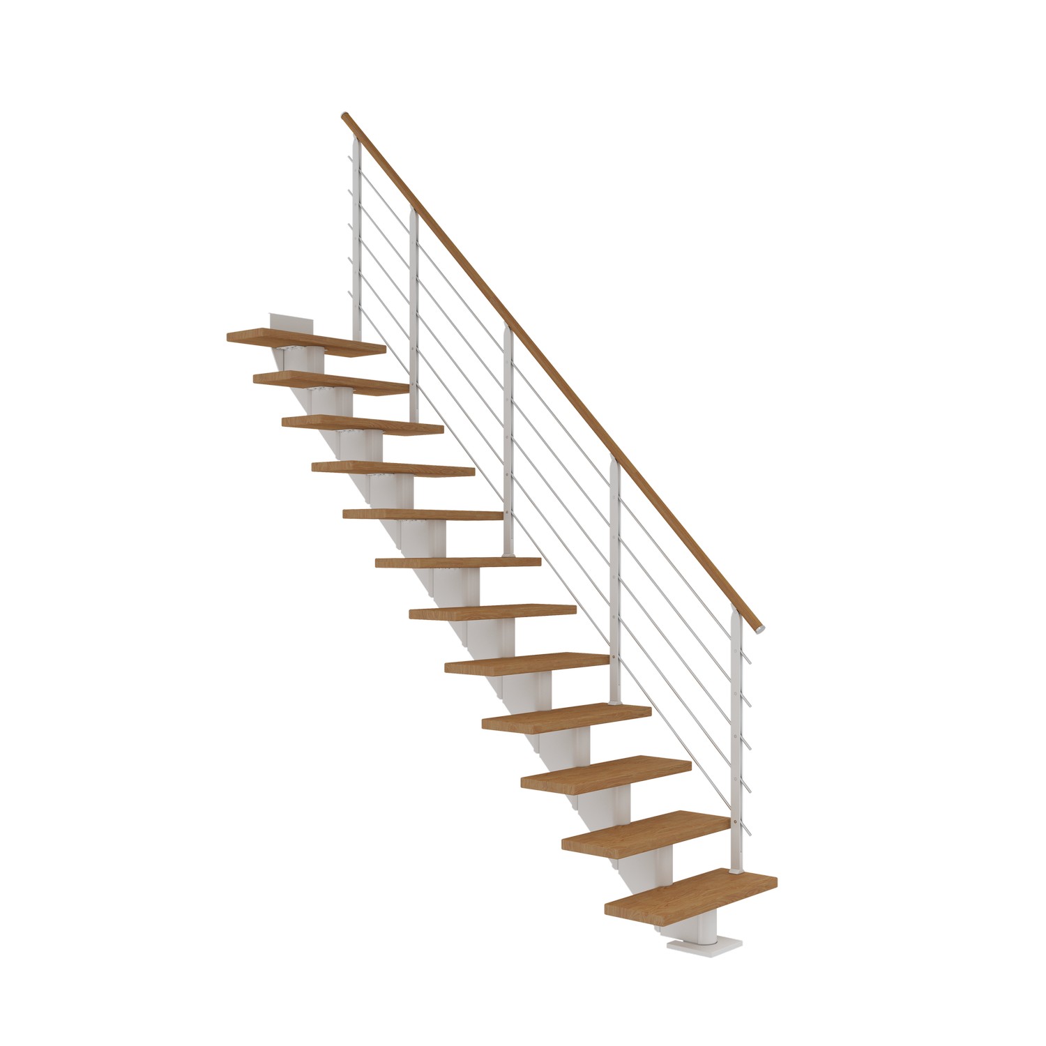 Skapa ett unikt intryck i ditt hem genom att anpassa trappformatet till rummets behov. Hamburg har upp till 14 steg som ger en maximal höjd från golv till golv på 322 cm. Varje steg har en justerbar höjd mellan 18,5 och 21,5 cm. Väggfästen ingår för att säkerställa hög stabilitet i trappan. Breda och djupa trappsteg i kombination med ett stabilt skyddsräcke gör trappan otroligt säker och bekväm att använda.