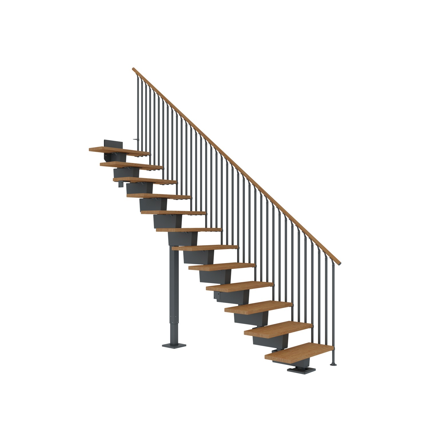 Våningstrappa DolleDubai Ek Oljad Classic IIIIPearl Grey, Max Takhöjd: 2550-3150 mm, Min Öppningsmått: 940-2550 mm, Antal Steg: 14 st