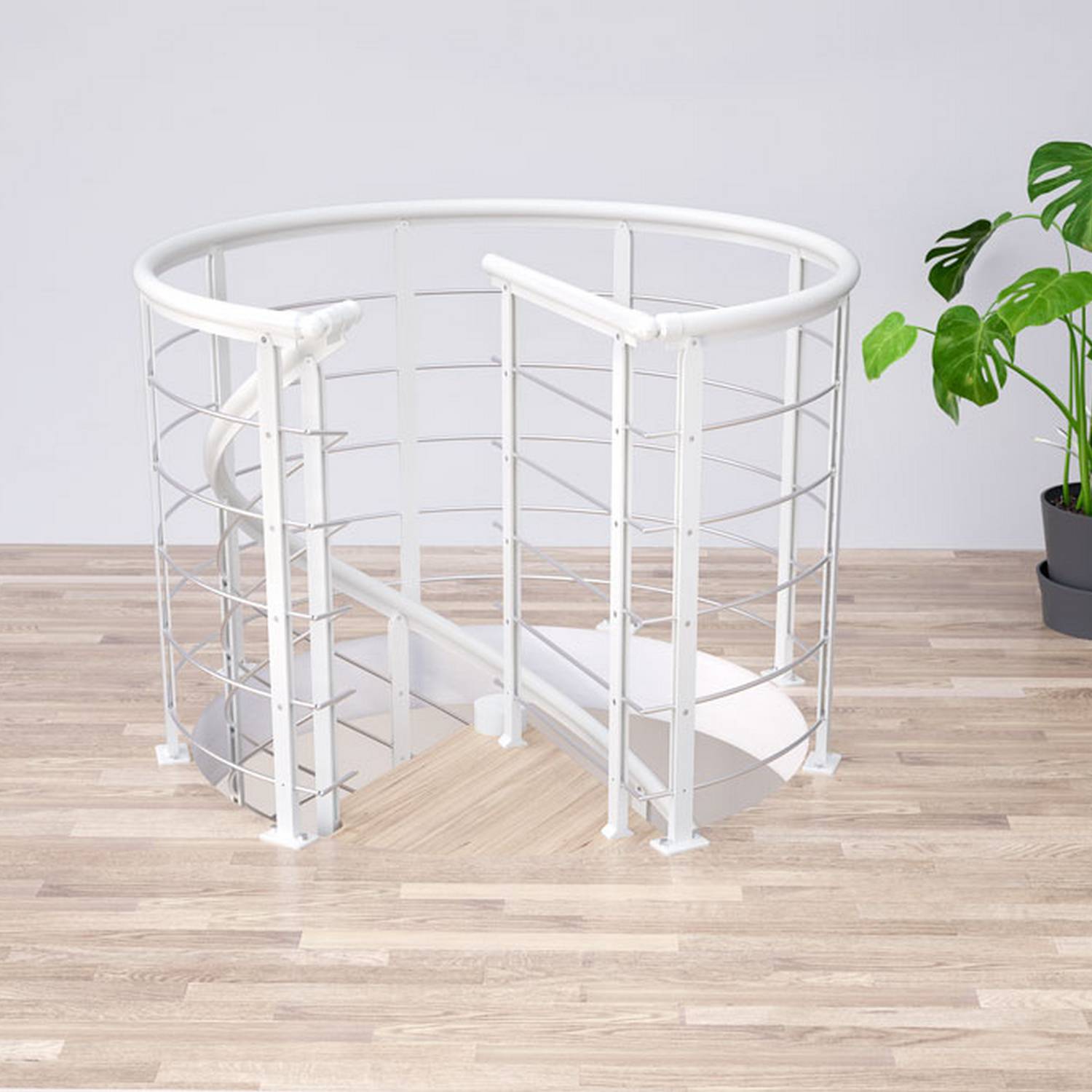 Skyddsräcke Dolle Design för spiraltrappor finns i färger som matchar trappan. Välj utifrån färg och diameter på din trappa.