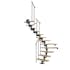 Balustrarna är monterade på utsidan och fästs i två steg för att maximera komfort och stabilitet. Detta gör även trappstegen lättare att rengöra. Balustrarnas övre del är gjord av pulverlackerat aluminium som ger en förstklassig finish. Räckena är pulverlackerade i samma moderna halvblanka färg som trappans strukturella element. Handledaren är gjort av samma massiva trä som trappstegen. Enkel och elegant!