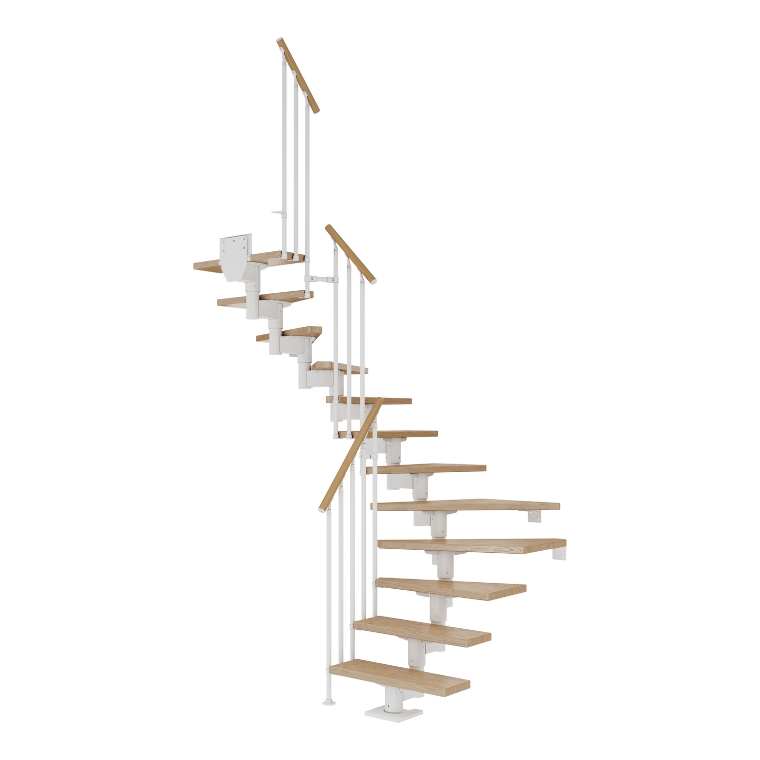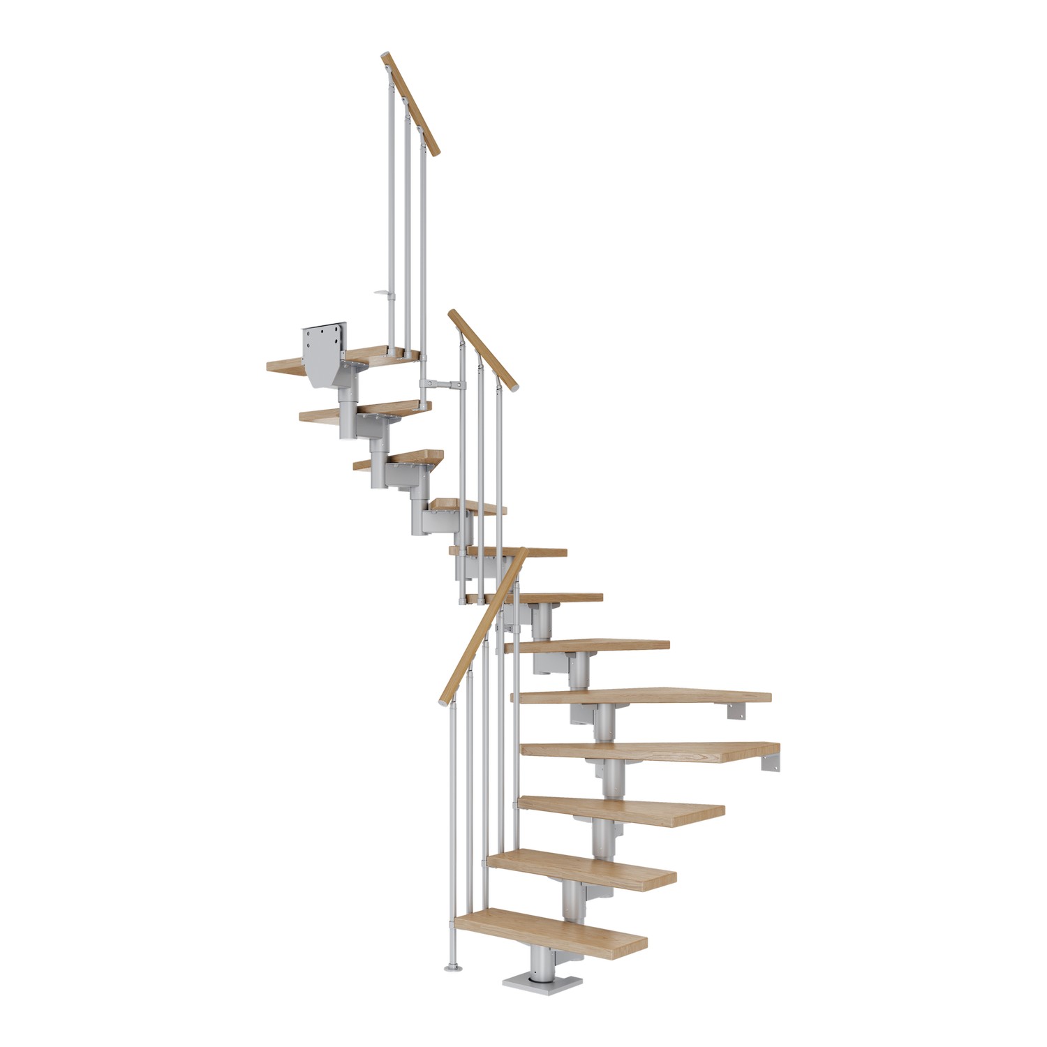 11-15 trappsteg i massivt trä ingår för CORK-trappor med en golv-till-golvhöjd på upp till 360 cm. När du installerar stegen med mer än 13 steg måste en stabiliserande stödstolpe installeras med. Detta ingår i paketet. För en lägre trappa tas överflödiga steg enkelt bort. Stegen har en hållbar och reptålig yta som är lätt att underhålla tack vare den halvblanka lacken. Höjden på varje steg kan ställas in mellan 18,5 och 22,5 cm.