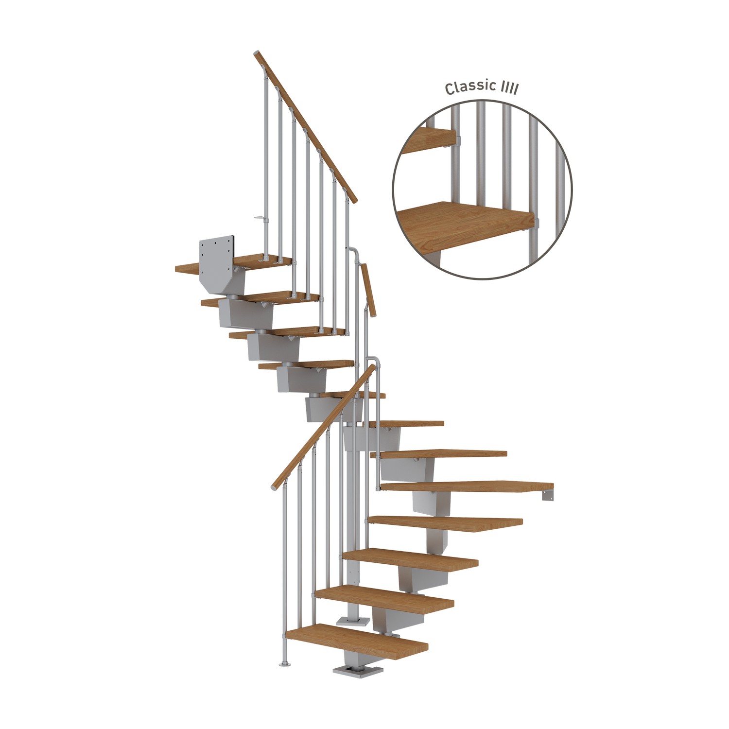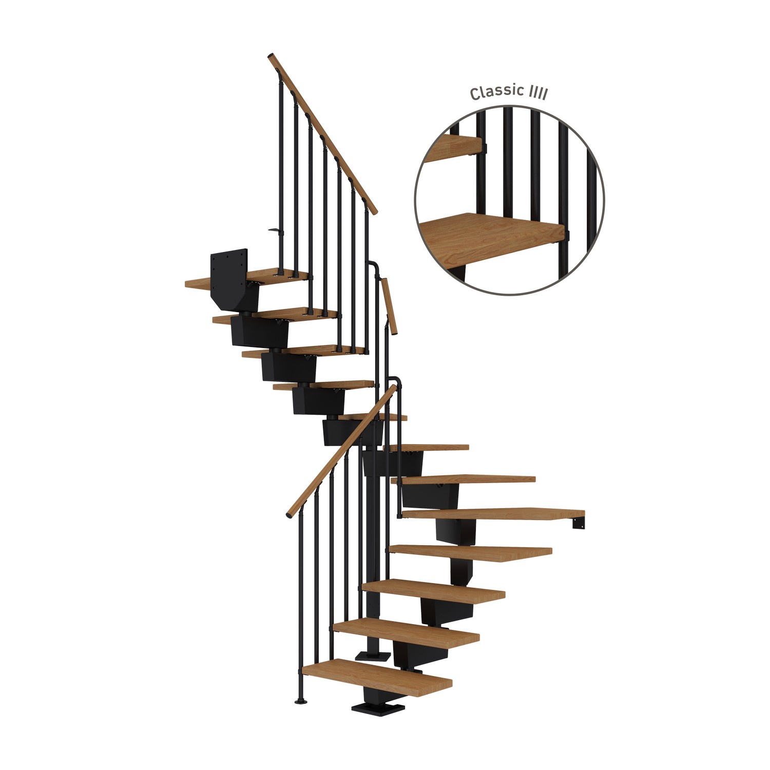 Vinkeltrappa DolleDubai Ek Oljad 1/2 Classic IIIIAntracit, Max Takhöjd: 2550-3150 mm, Antal Steg: 14 st