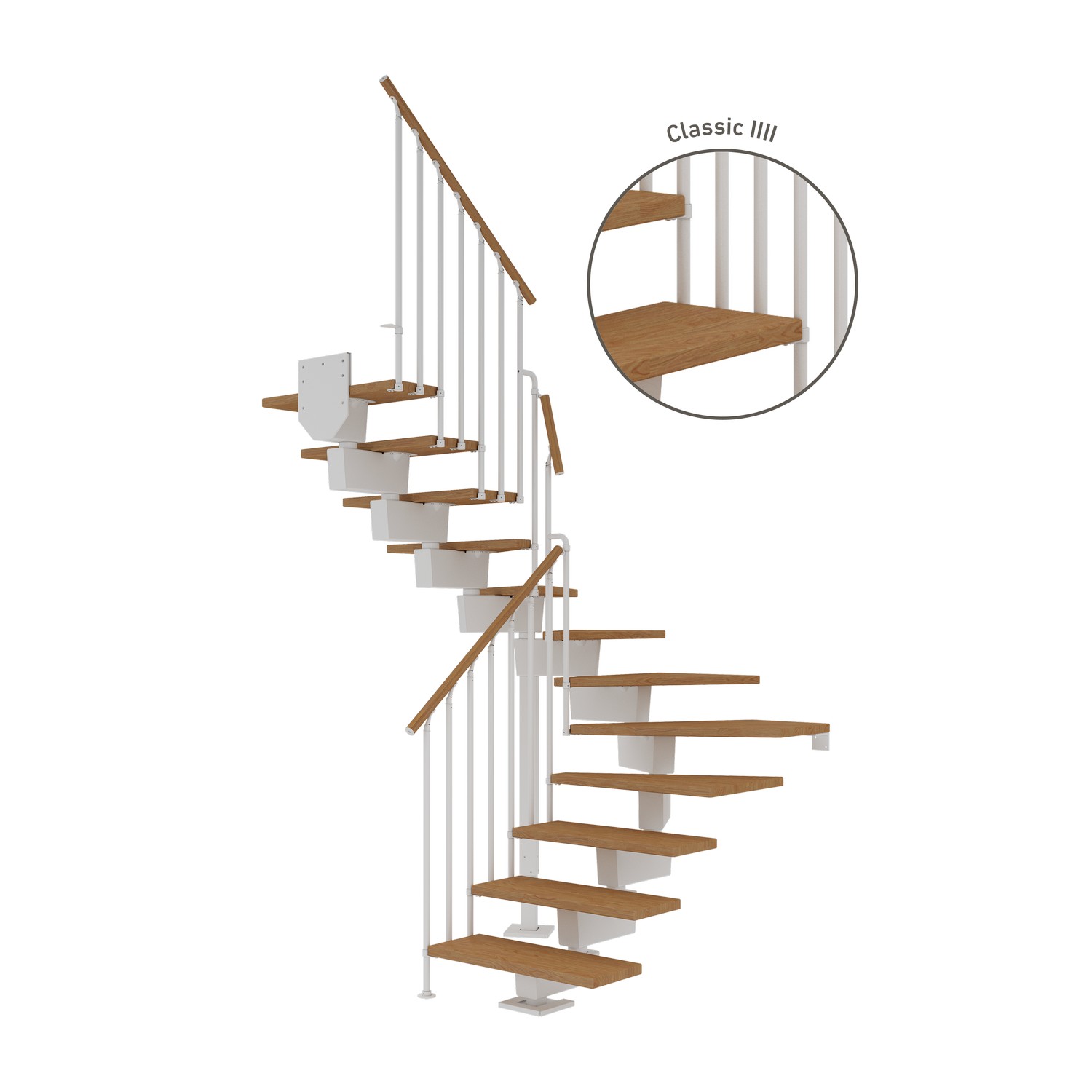 Vinkeltrappa Dolle Dubai Ek Oljad 1/2 Classic IIII är en modern huvudtrappa med högsta komfort. Dubai är en modern och Skandinavien-inspirerad huvudtrappa, som med sin lätta och eleganta design passar perfekt in i den nordiska, moderna stilen.